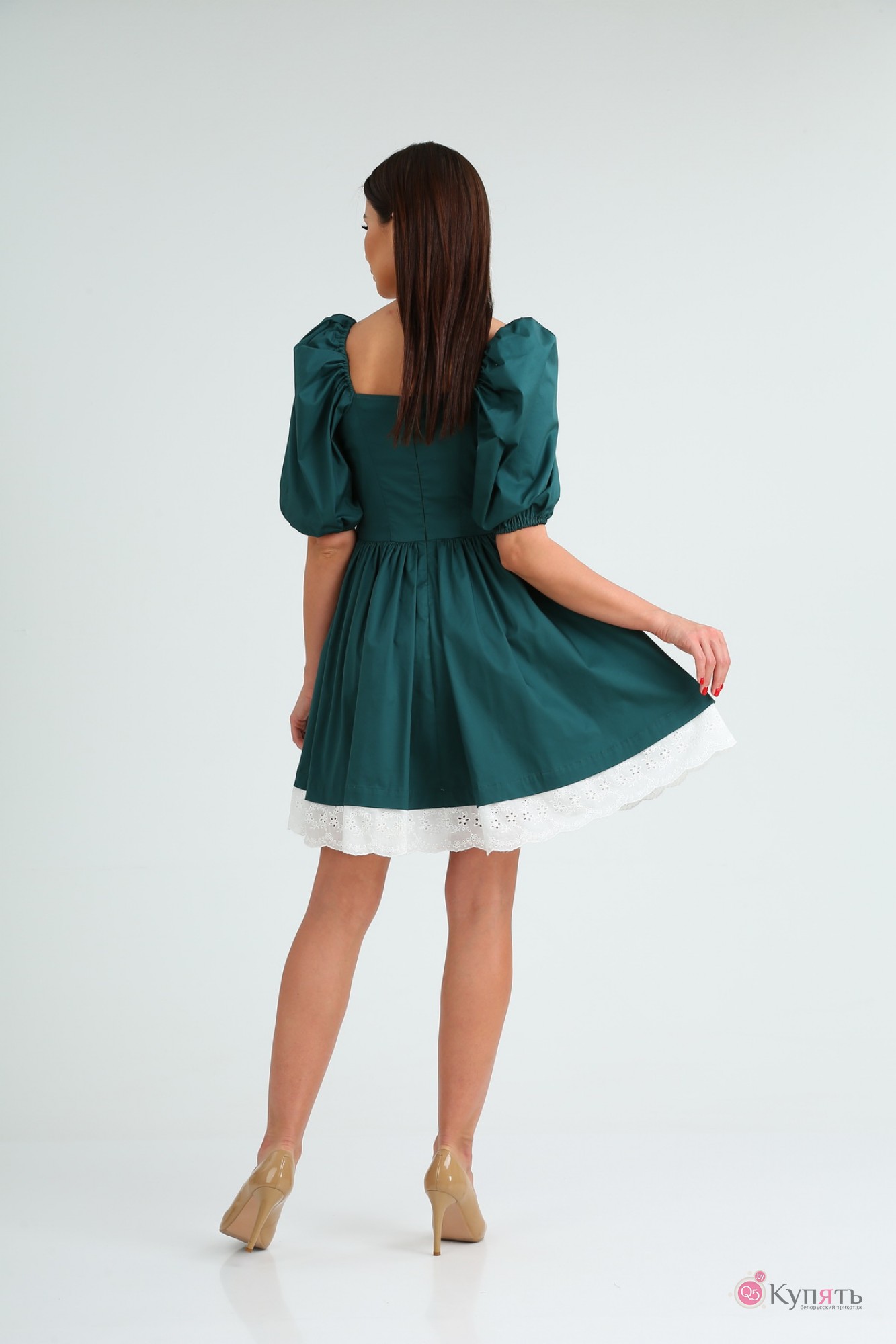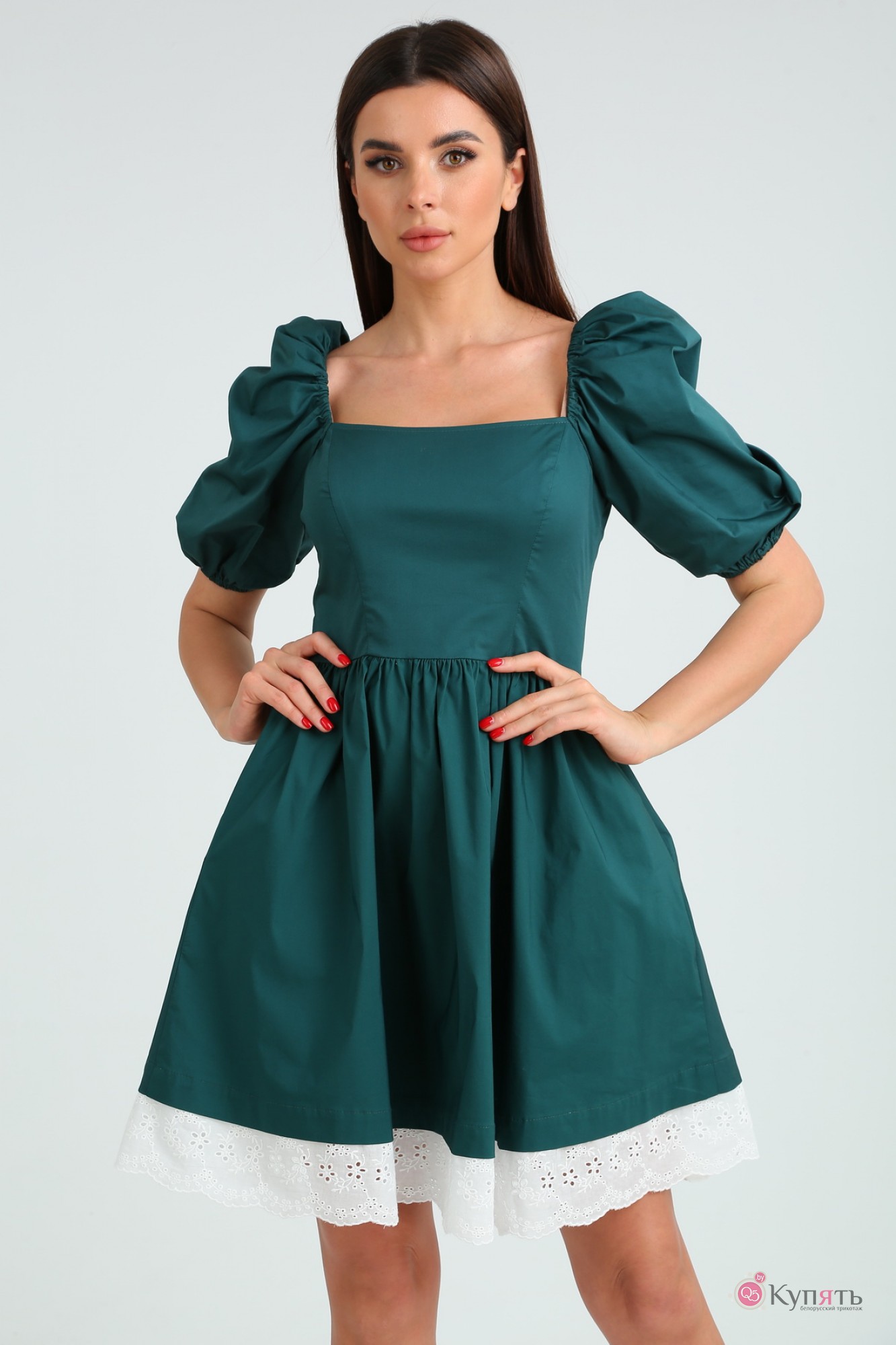 По лифу платья рельефы по переду и спинке. Карманы в боковых швах. Рукав - фонарик на резинке по окату и по низу рукава. Низ платья обработан декоративной тесьмой.