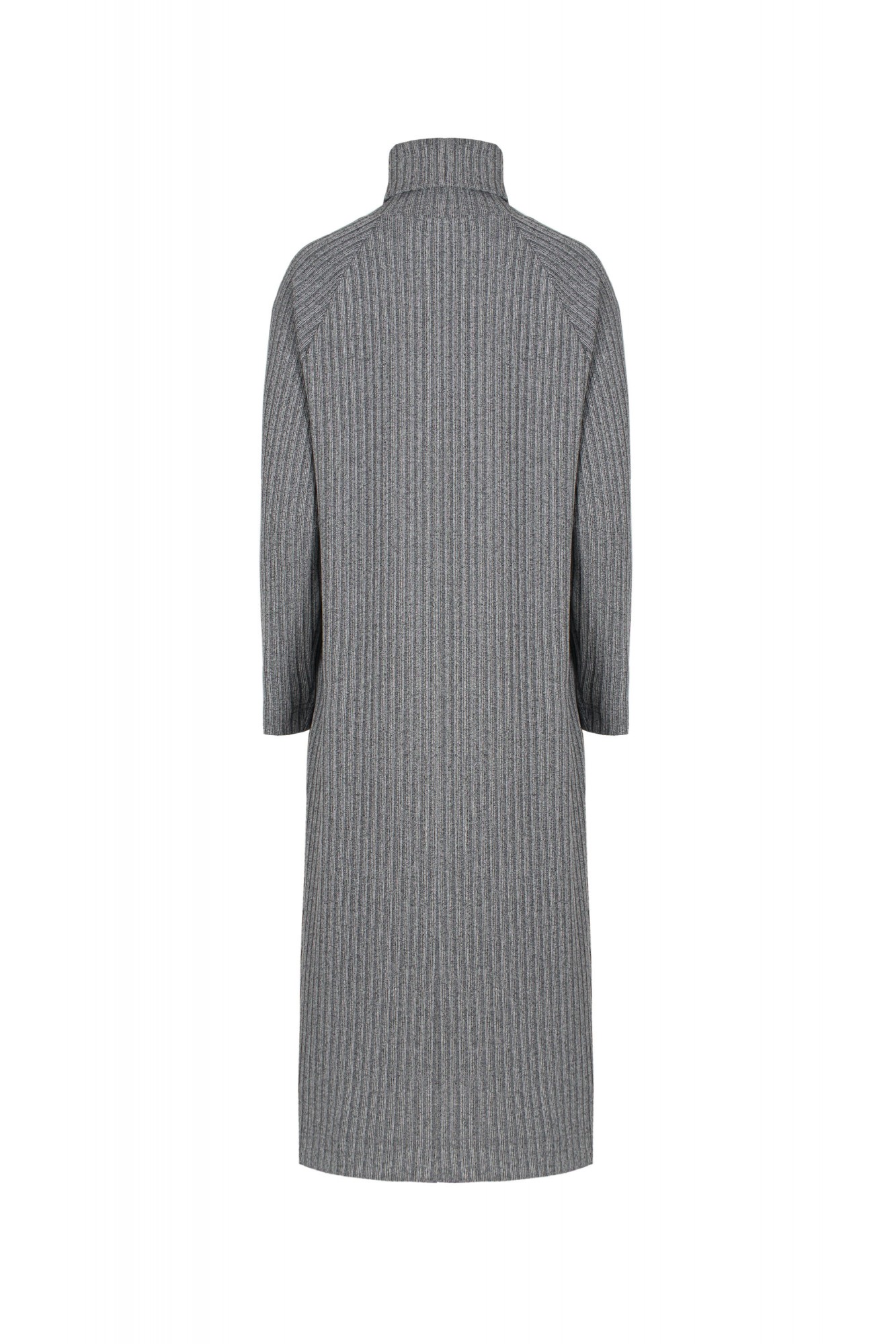 Платье женское, прямого силуэта из трикотажного полотна, длинное. Воротник- стойка, рукав- реглан.