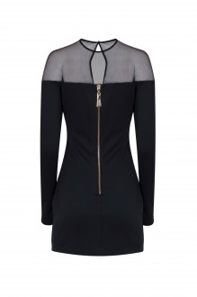 Платье женское прямого силуэта, длиной ниже колена. Рукав одношовный, втачной. Горловина окантована косой бейкой. На спинке застежка молния.