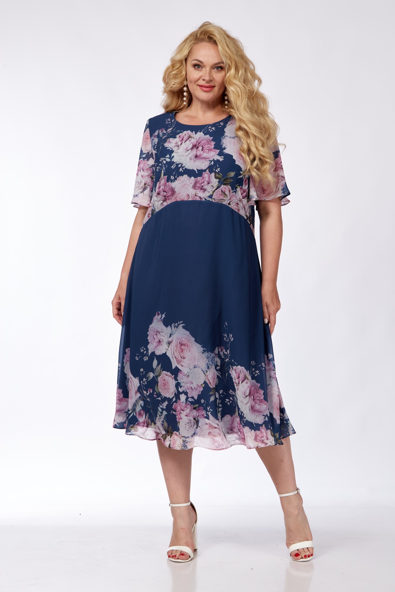 Платье Элль-Стиль 2218/2 джинс, принт цветы с ID товара 395810