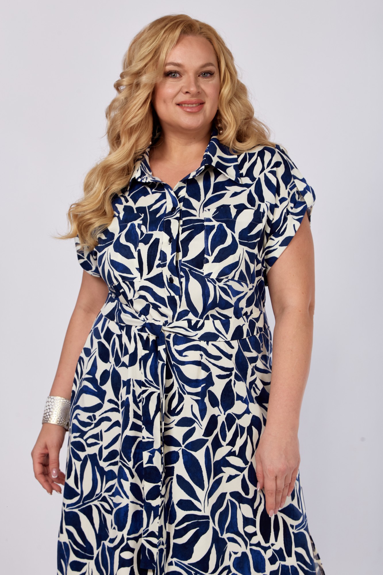 Платье Элль-Стиль 2293 /1 синий, принт беж с ID товара 419972