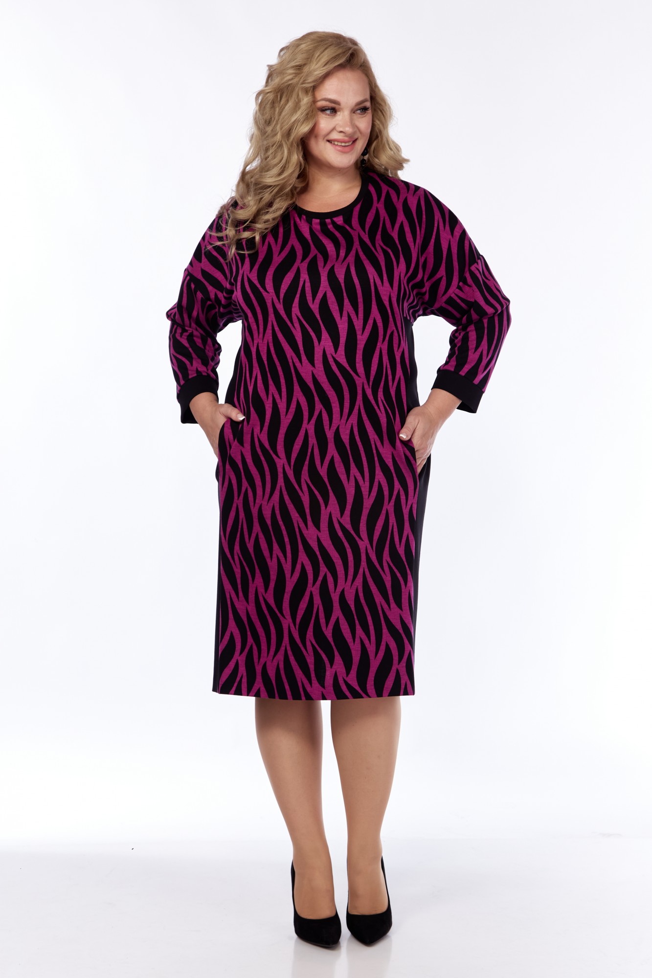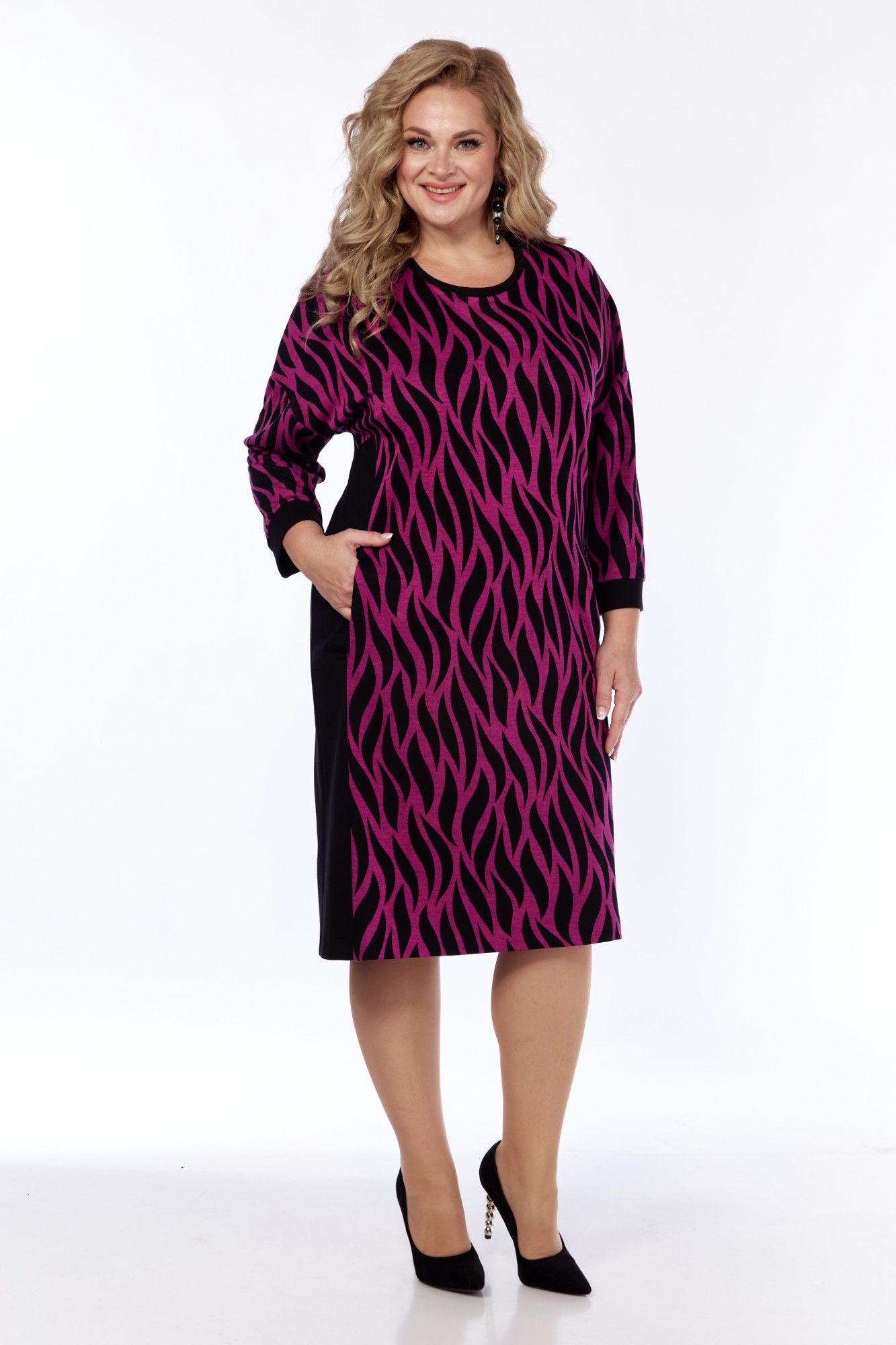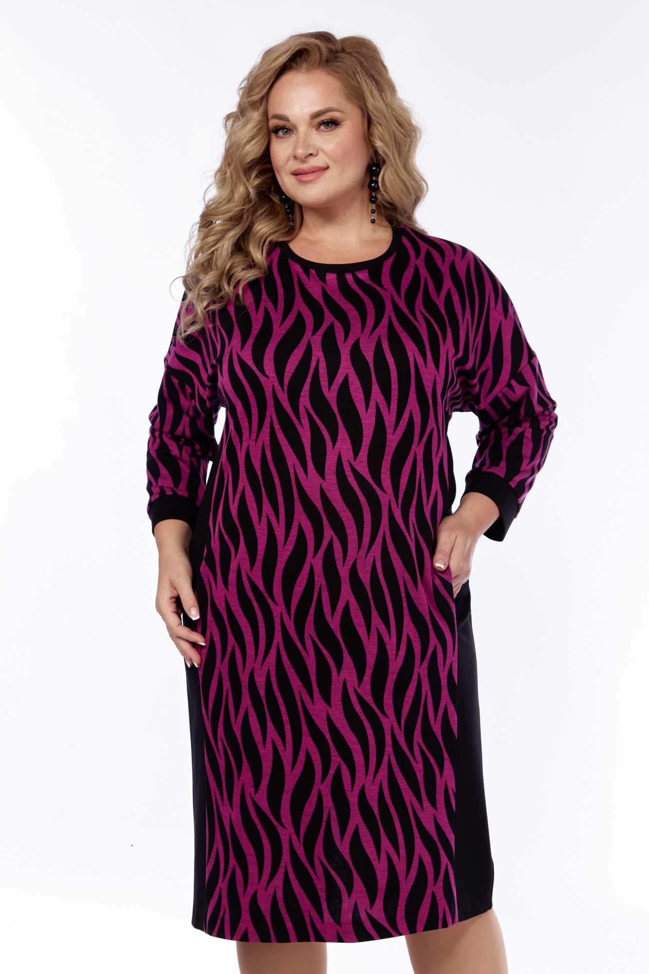 Платье Элль-Стиль 2331 черный, принт фуксия с ID товара 406735