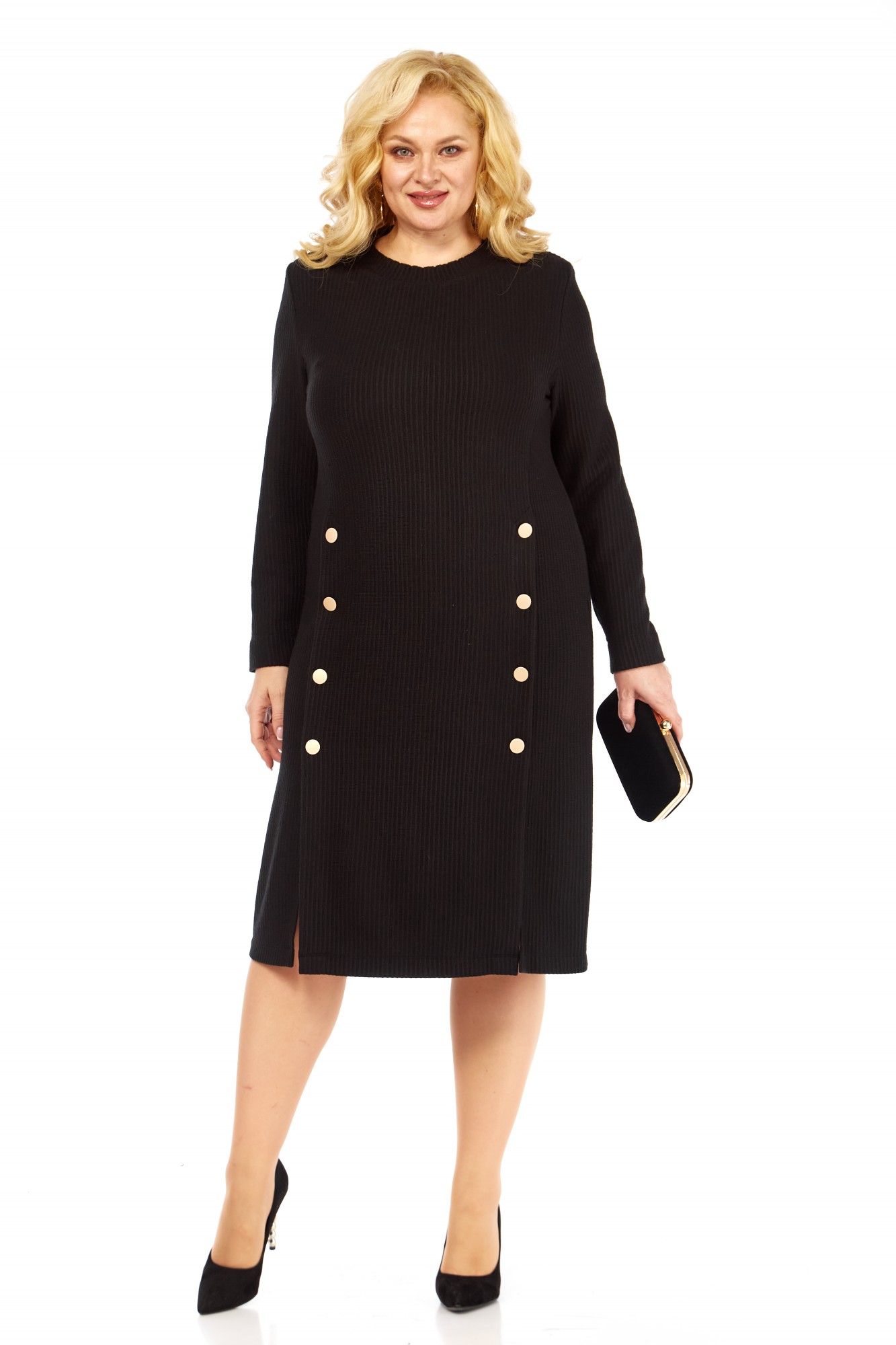 Стильное платье полуприлегающего силуэта выполнено из трикотажной ткани, контрастные декоративные пуговицы визуально создают красивый акцент. Фасон интересен тем, что модельные линии, как нельзя лучше подчеркивают плавные изгибы женской фигуры. Вырез горловины классический овальный. Рукав втачной, полной длины.