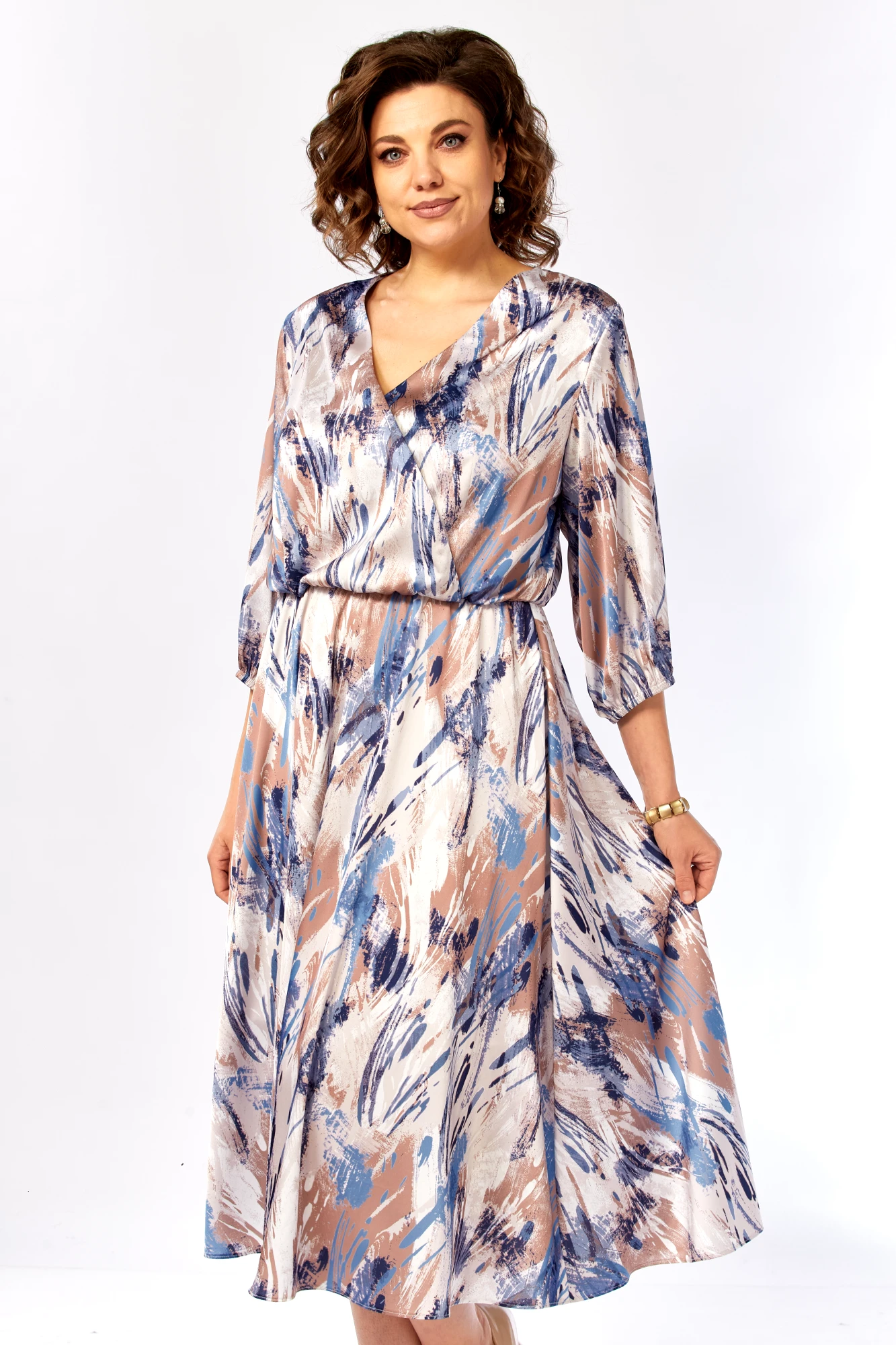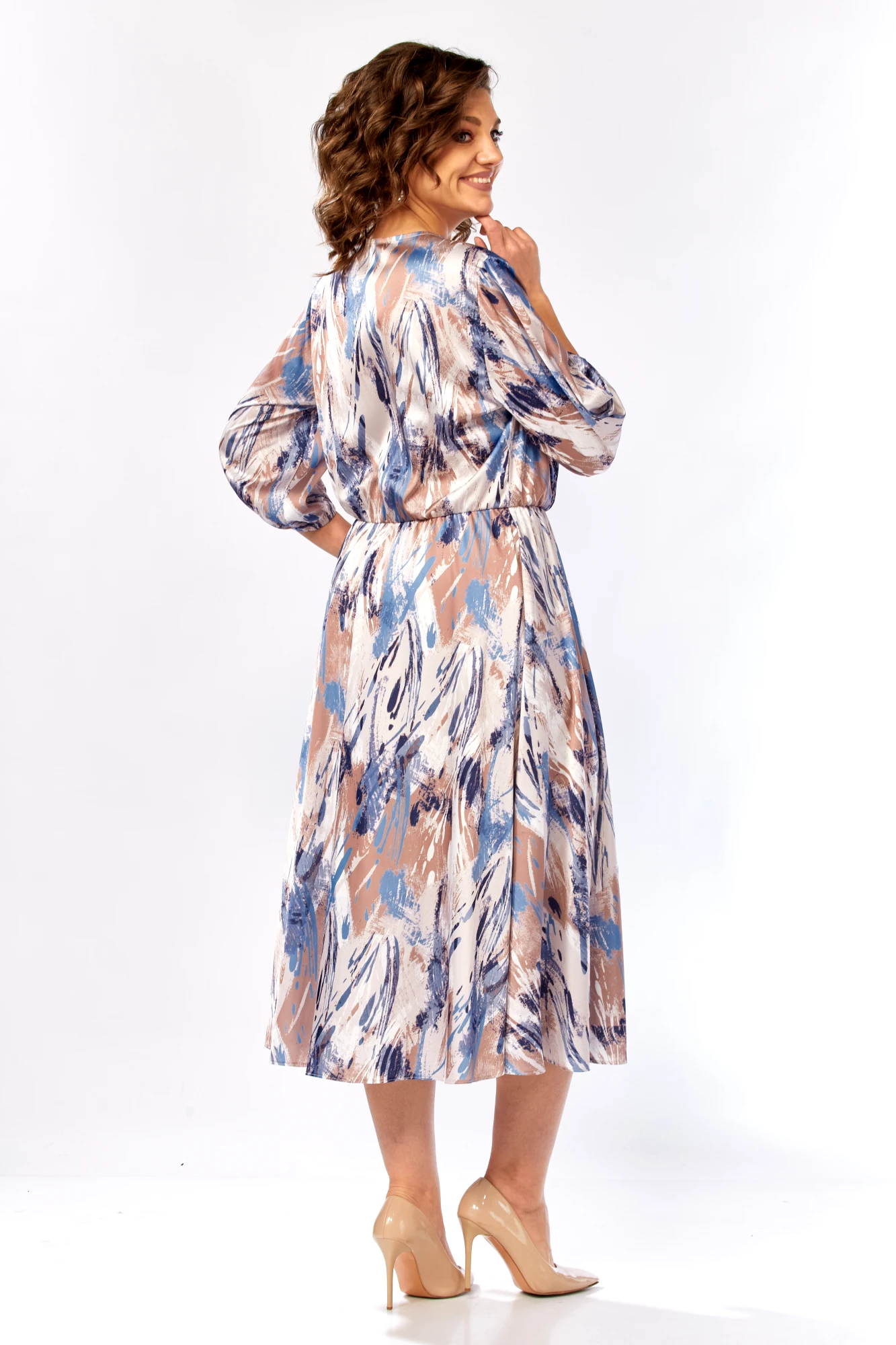 Платье Элль-Стиль 2462 бежево-голубой принт