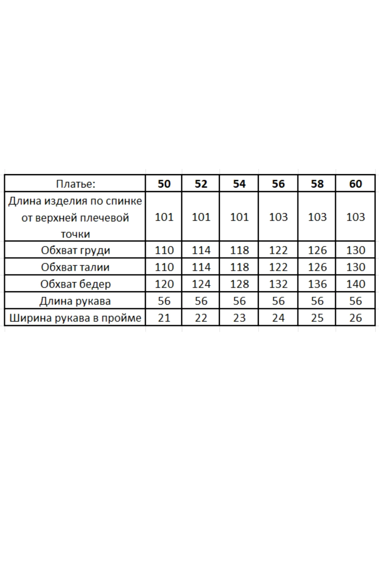 Таблица размеров