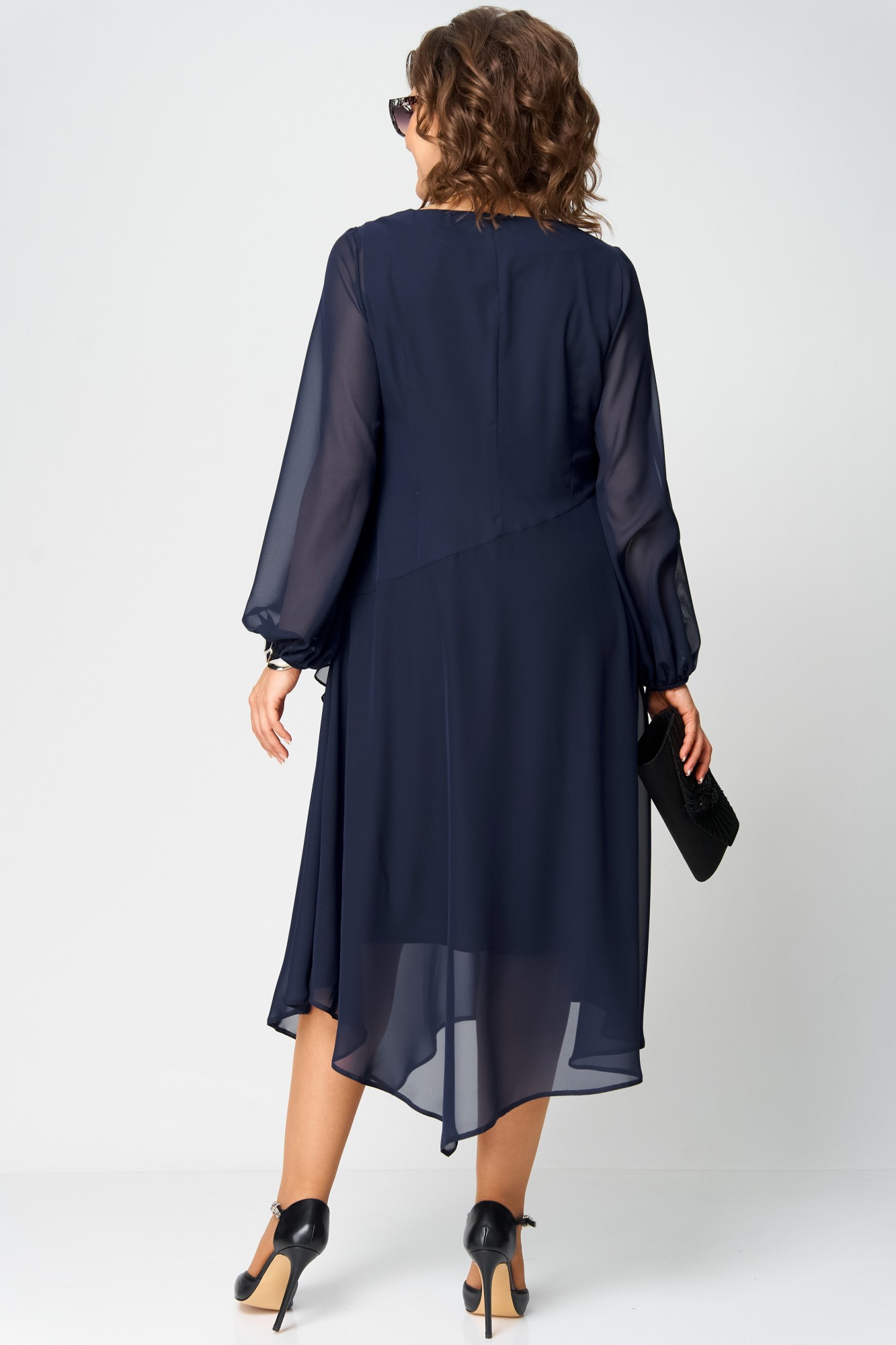 Платье женское нарядное полуприлегающего силуэта на трикотажной подкладке расширенное к низу выполнено из шикарного шифона. Вырез горловины V-образный, рукав втачной по низу собран на резинку. По полочке нагрудные вытачки и фигурные подрезы с двойными воланами. Низ платья фигурный. Декором платья служат воланы и дизайн самой ткани.