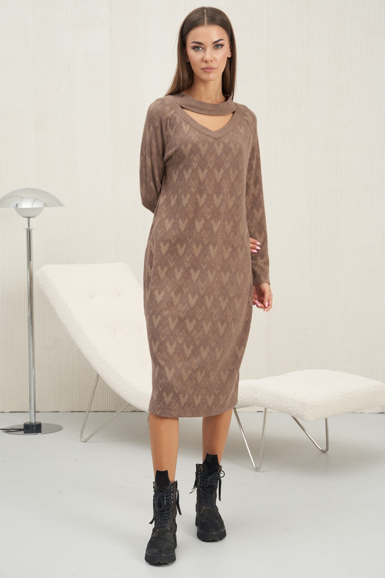 Зима и осень удручают нас холодом и недостатком солнечного света. А мы побеждаем осеннюю хандру своими модными тёплыми трикотажными платьями. Удобные, их приятно носить, в них чувствуешь себя невероятно комфортно. Оригинальные вырезы - одна из ключевой идеи модели. Небольшой участок открытого тела интригует и компенсирует общую простоту платья. Полуприлегающий силуэт, покрой-реглан, длина миди. Просто и восхитительно!