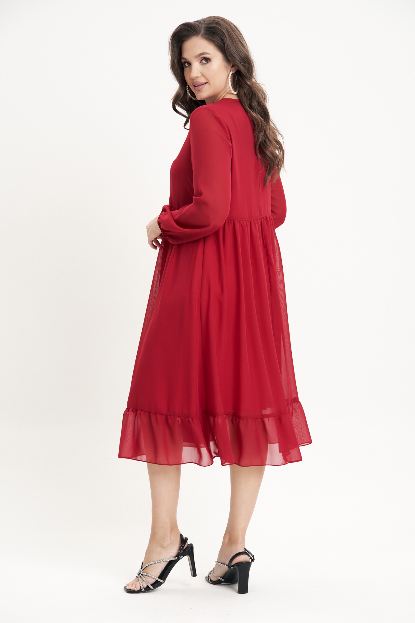 Современная мода диктует новые правила: платья из шифона плавно из нарядных , перешли в наш повседневный гардероб. Прогулка летним вечером и в не жаркий день в такой одежде - одно удовольствие, лёгкое, струящееся полотно изящно создает ощущение воздушности. Свободный, упрямлённый силуэт, втачной покрой, отрезной лиф, чуть выше линии талии. Нижняя часть платья - коническая со сборкой. По низу платья - притачной волан. Спинка со средним швом и застёжкой. Рукав с манжетой и сборкой, Нижнее платье из подкладочной вискозы, А-силуэта, на регулирующихся бретелях.