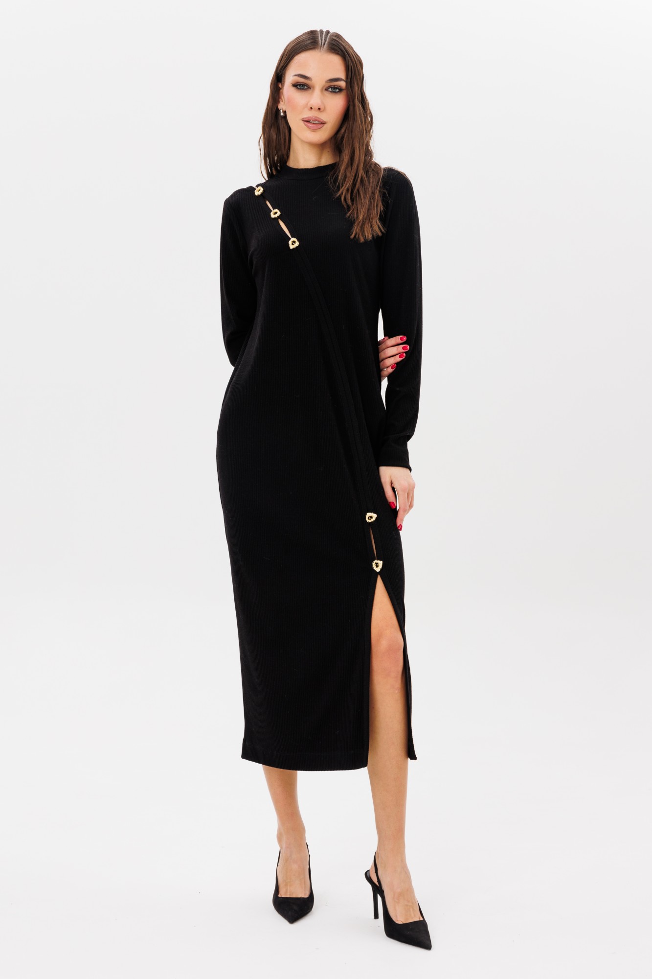 Платье, в котором вы будете на высоте! Полуприлегающий силуэт, втачной покрой, воротник стойка, фигурный ассиметричный рельеф по полочке переходящий в разрез по низу. Рельеф с частично открытыми каплями, подчеркнутый дизайнерскими пуговицами. Все это делает наше платье нарядным и одновременно повседневным!