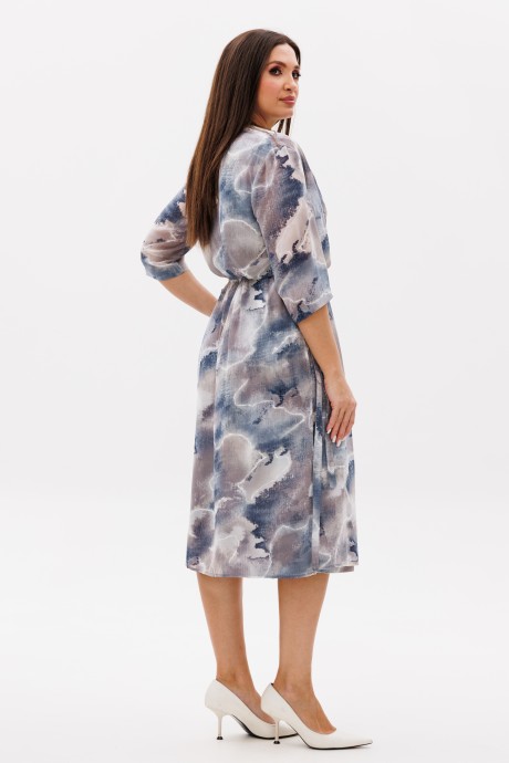 Лёгкая, струящаяся, полупрозрачная ткань окутывает вас в своих объятиях, плавность и мягкость линий будоражит воображение, завораживает. Это платье из шифона - верх изящности и красоты! Два в одном: простое нижнее платье А-силуэта с V-образным вырезом из масла и летящее верхнее платье из тончайшего шифона. Верхнее платье А-силуэта, отрезное по линии талии на полочке, с мягкой складкой и эффектными разрезами по центру переда и боковым швам. Рукав втачной, на притачной манжете со сборкой в нижней части. По линии талии - кулиса с регулирующим поясом.