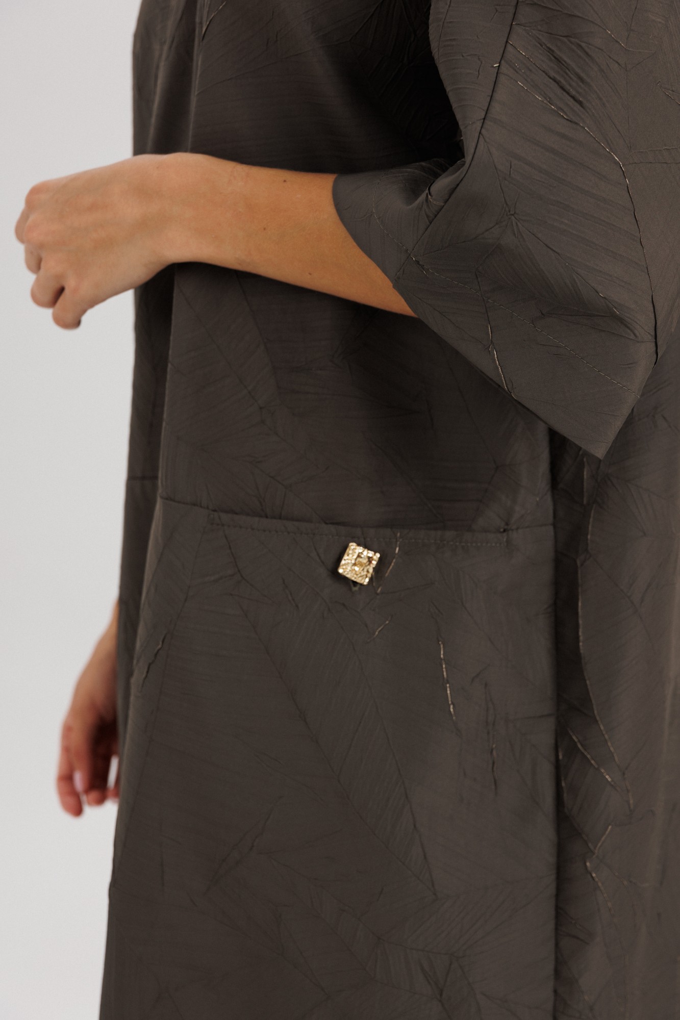 Стильное платье прямого силуэта — идеальный выбор для женщин, которые ценят комфорт и современный дизайн. Модель выполнена из плотной ткани с легкой фактурой, что обеспечивает безупречную посадку и сохранение формы в течение дня. Цельнокроеный покрой и свободная посадка создают лаконичный и элегантный образ, подходящий для любого типа фигуры. Рукава длиной до локтя добавляют лёгкости и делают силуэт визуально утончённым. Округлый вырез горловины подчеркивает женственность и универсальность модели. Платье имеет декоративные металлические элементы у линии карманов, что придает образу современный акцент. Универсальная длина до колена позволяет сочетать модель как с высокими сапогами, так и с ботильонами или обувью на плоской подошве. Особенности модели: Прямой силуэт, цельнокроеный покрой. Плотная, слегка фактурная ткань. Рукава до локтя. Длина до колена. Округлый вырез горловины. Декоративные элементы у карманов. Универсальный стиль — подойдёт для офиса, прогулок и встреч.
