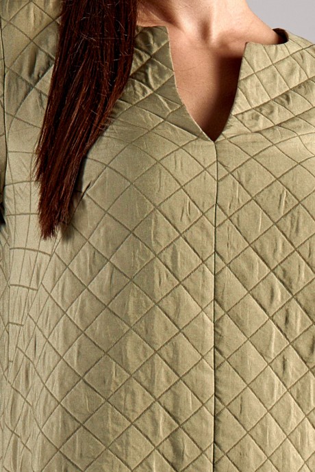 Платье А-силуэта с втачными рукавами. Горловина с фигурным вырезом, в боковых швах карманы.