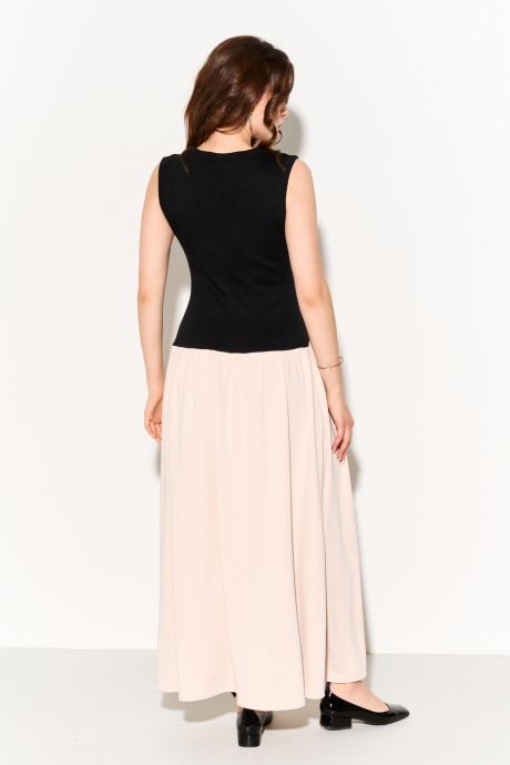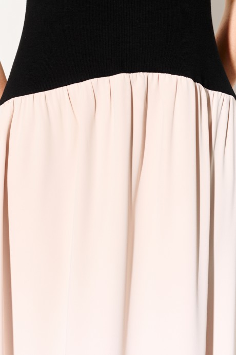 Нарядное базовое платье длины миди полуприлегающего силуэта. Верхняя часть платья выполнена из трикотажа "кашкорсе", который держит форму и подчеркивает силуэт. Нижняя часть платья выполнена из струящейся ткани средней плотности. Линия талии немного спущена и присборена. Платье полностью соответствует заявленному размеру. Уход: - при стирке в стиральной машине выбрать бережный либо деликатный режим; - температура воды не выше 30 градусов.