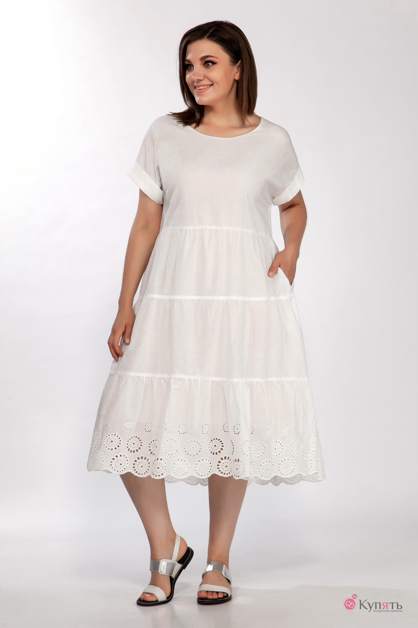 Стильное платье свободного силуэта из нежного хлопкового шитья на хлопковой подкладке с цельнокроеными рукавами и декоративной манжетой.