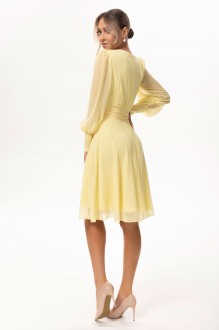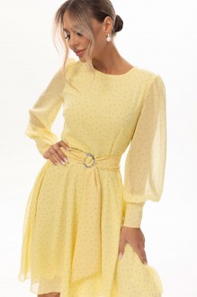 Платье без воротника, с круглым вырезом горловины, застежкой на потайную молнию в среднем шве спинки. Платье отрезное по линии талии. Верхняя часть переда с талиевыми вытачками. Спинка со средним швом, верхняя часть спинки с талиевыми вытачками. Окат рукава присборен. Платье со съемным поясом. Вид покроя рукава: втачной, длинный, с отрезной манжетой. Комплектация: платье на подкладке