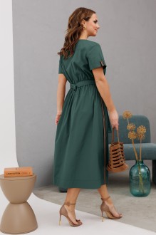 Платье женское полуприлегающего силуэта. Вырез горловины округлый, рукав втачной на манжете. По талии резинка и съемный пояс. Спинка с кокеткой. Застежка в изделии по переду на тесьму-молнию.