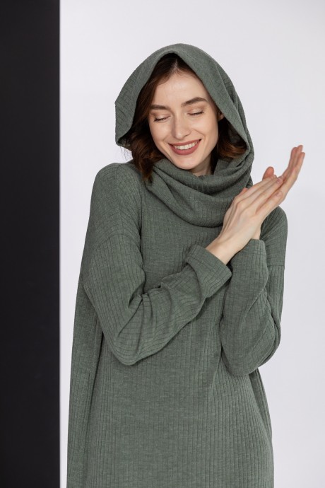 Платье-лапша с капюшоном - ультрамодный предмет одежды, который позволит вам выглядеть стильно и актуально. Такое платье не только красиво и стильно смотрится, но и защитит вашу прическу от ветра, а вас от холода. А еще вы можете использовать капюшон в виде объемного воротника, заменяя тем самым шарф. Модель платья - оверсайз.