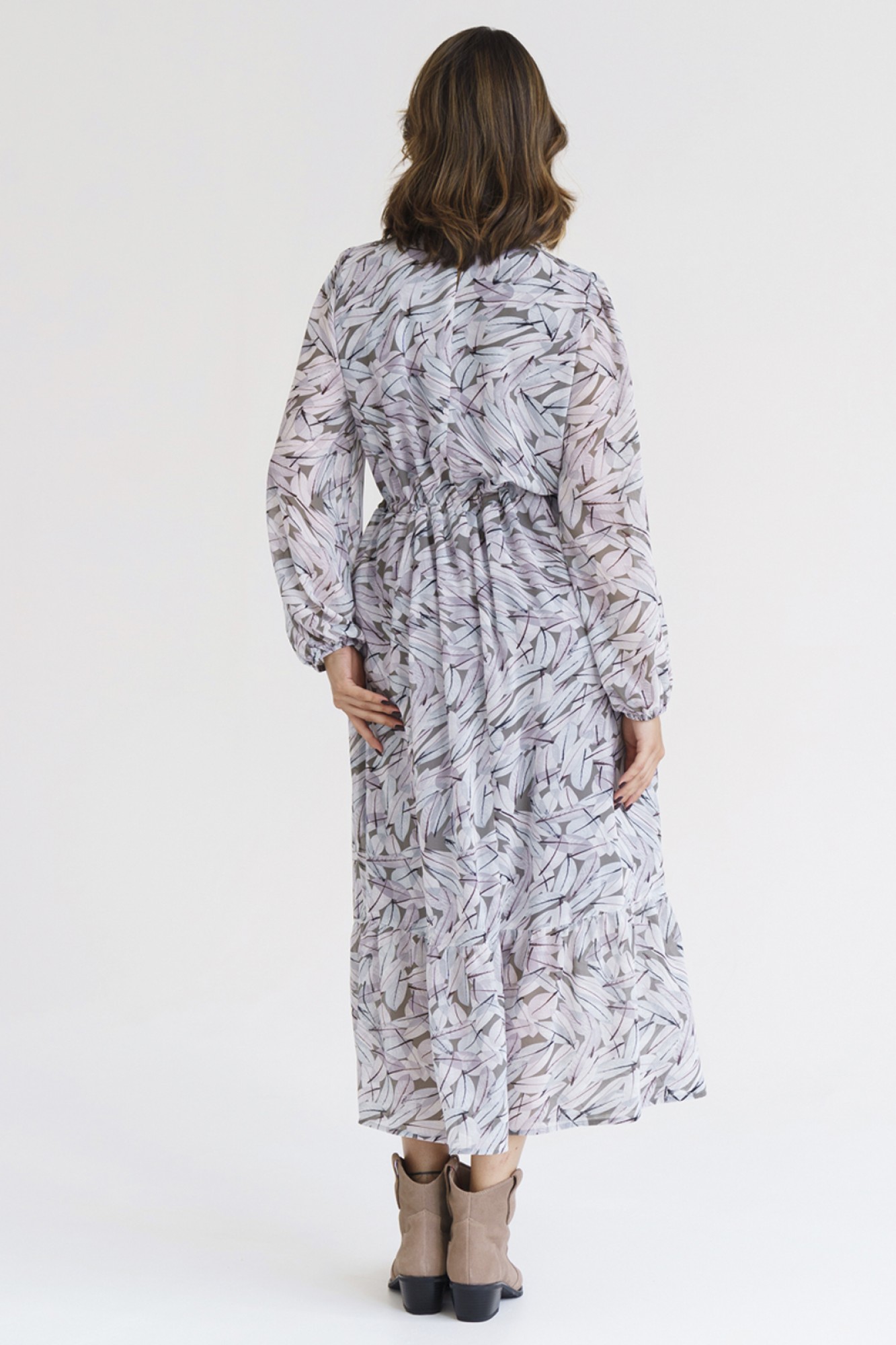 Это изящное женское платье из легкого и воздушного шифона идеально подчеркнет вашу женственность и утонченный вкус. Платье выполнено в классическом и всегда актуальном стиле миди, что делает его универсальным для любого случая. Прямой силуэт платья облегает фигуру, но при этом не сковывает движения. Талию подчеркивает удобная кулиска, позволяя вам создать идеальный силуэт и подчеркнуть вашу талию. Рукава платья свободные, с манжетами на резинке, что обеспечивает комфортную посадку на любой тип руки. Сборка на плечах добавляет платью легкость и воздушность. Округлый вырез горловины аккуратно подчеркивает шею, делая образ более элегантным и изящным. По низу платья притачной волан добавляет изюминку и романтическую нотку, а принт в виде цветов на ткани придает платью особую изысканность и шарм. Вискозная подкладка обеспечивает дополнительный комфорт и приятные тактильные ощущения при носке. Это женское шифоновое платье станет незаменимым элементом вашего гардероба для создания неповторимых и стильных образов на каждый день и по особым случаям. Наслаждайтесь своим отражением в зеркале и восхищенными взглядами окружающих!