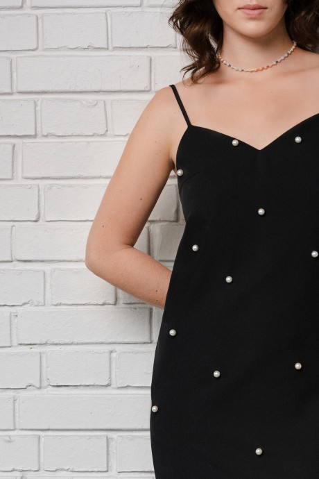 Платье на бретелях молодежное полуприлегающего силуэта из ткани однотон с декором по переду (пробивные жемчужинки),на подкладке с застежкой молнией со средним швом.