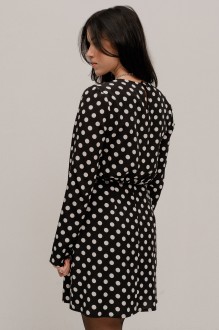 Платье женское из ткани шелк иск. с печатным рисунком на подкладке. Приталенного силуэта, рукав рубашечного типа длиной до запястья. Перед со сборкой по линии талии и по спинке по лифу. Отрезное по линии талии, с застежкой молнией в боковом шве спинки и на пуговицу и петельку по спинке.