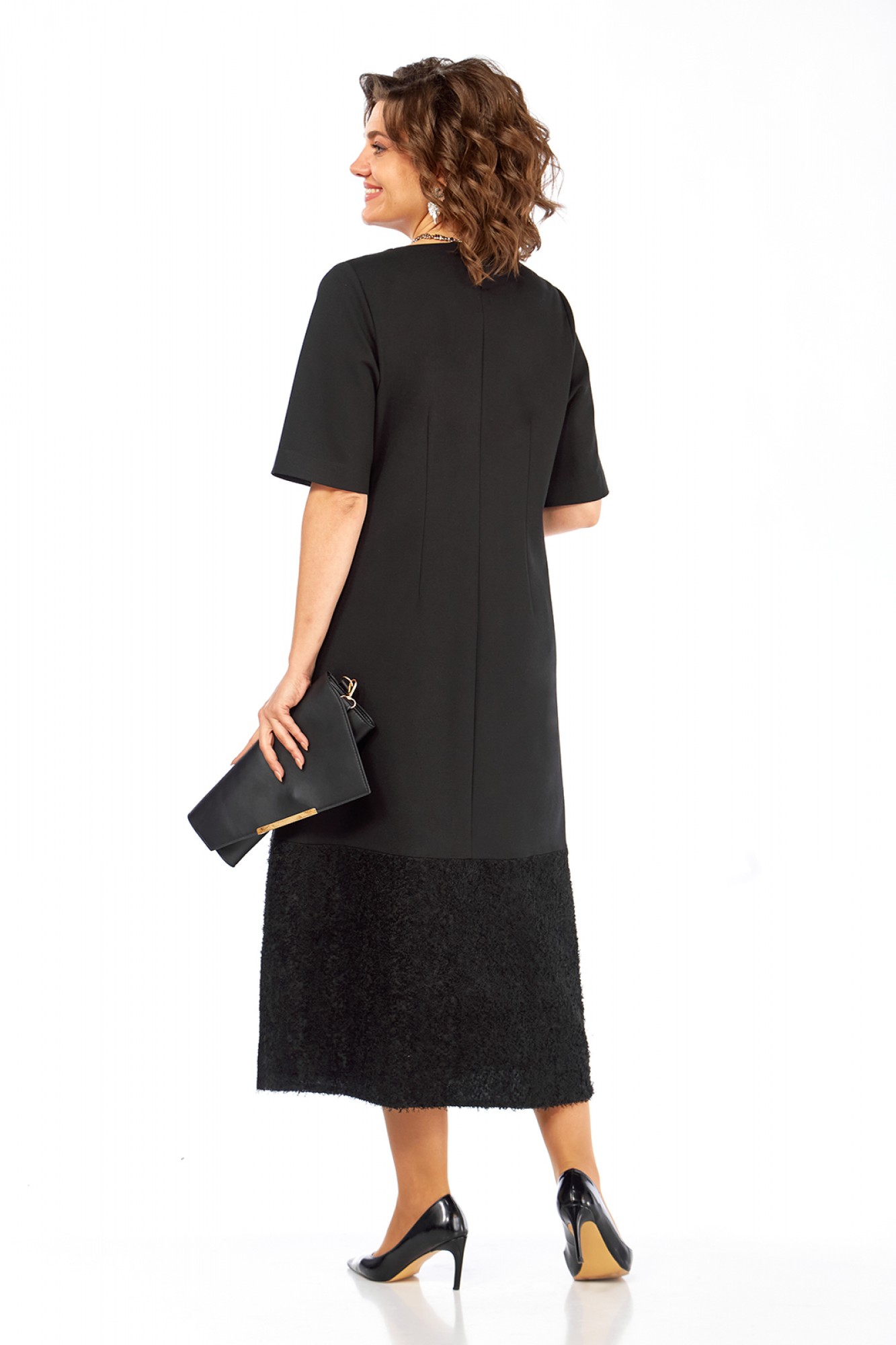 Платье женское нарядное, полуприлегающего силуэта. Выполнено из трикотажного полотна с отделкой из декоративной ткани по низу. Горловина круглой формы. По переду обработаны вытачки-складки. На спинке таллиевые вытачки и средний шов, с застежкой на навесную петлю и пуговицу вверху. Рукава втачные, длиной до локтя. Обращаем Ваше внимание, что цвет на экране может отличаться от реального.