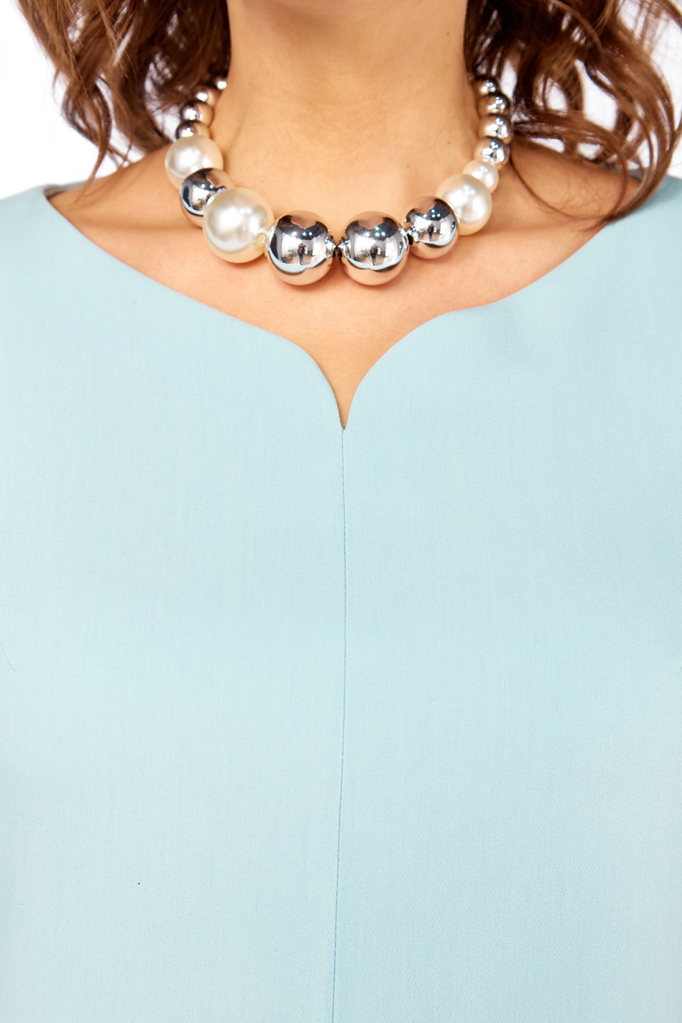 Платье женское , полуприлегающего силуэта, выполнено из плательно-костюмной ткани. Горловина фигурной формы. Перед с нагрудными вытачками и средним швом в котором обработан разрез. Спинка со средним швом. Рукава втачные, одношовные с небольшим разрезом по шву.