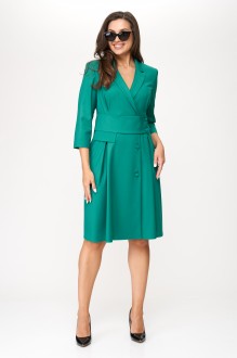 Платье полуприлегающего силуэта с воротником рубашечного типа. Рукав 3/4 втачной одношовный. Застежка на 4 пуговицы. Пояс втачной с застежкой на пуговицы. По переду и низу лифа складки