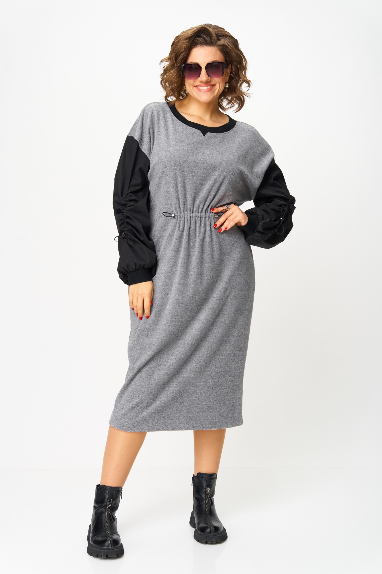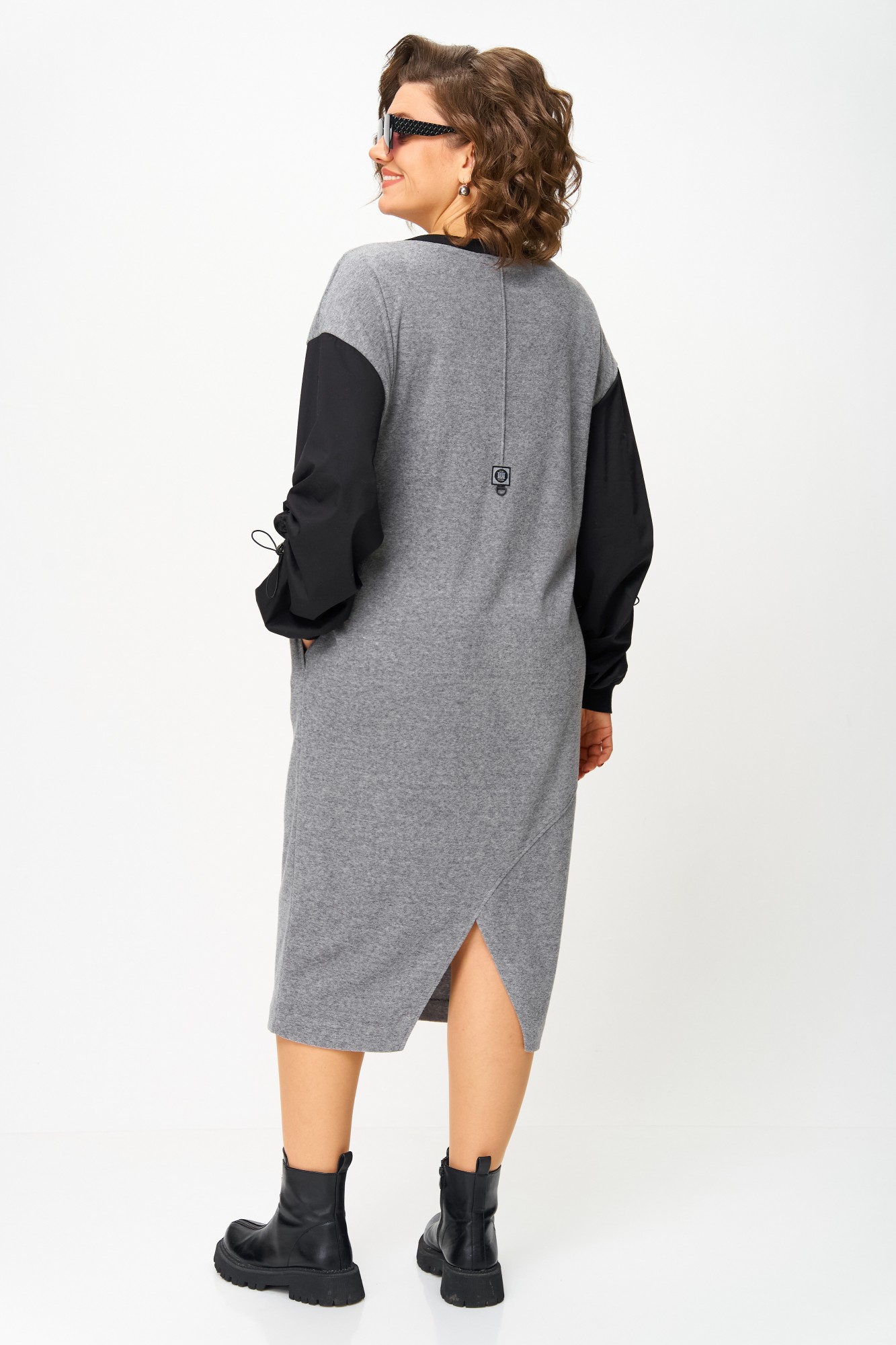 Рукава платья выполнены из рубашечной ткани, широкие. Низ рукава на манжете из довяза. В шве рукава кулиса со стоппером и эластичным шнуром. Платье без застёжки, без подкладки.