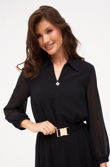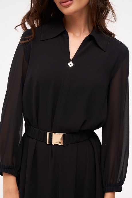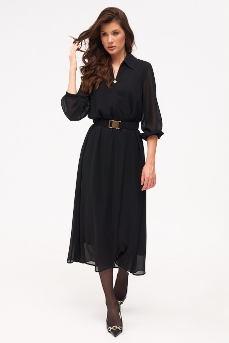 Платье А-образного силуэта длины миди из струящегося шифона. Длина рукава 7/8 с низом на резинке. Застёжка на потайную молнию спереди. Комплектуется текстильным ремнём на резинке с металлической пряжкой.