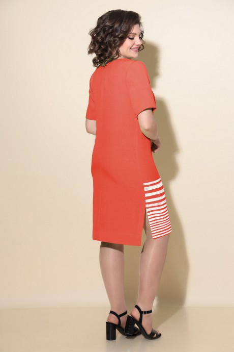 Платье женское, прямого силуэта. По полочке отрезная кокетка. Рукав втачной, короткий. Горловина округлой формы. Низ полочки украшен декоративной печатью.