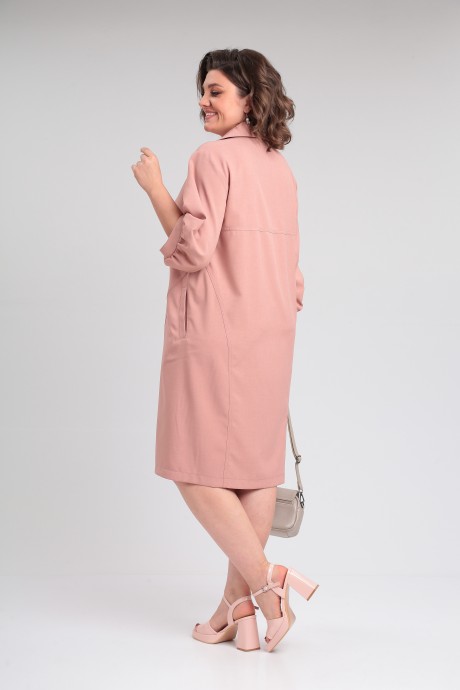 Платье свободного силуэта с рельефами и прорезными карманами с листочками, воротник рубашечного типа на стойке. Выполнен из летней ткани "лён-вишер". Вырез декоративная планка, рукав втачной со сборкой на фигурной манжете.