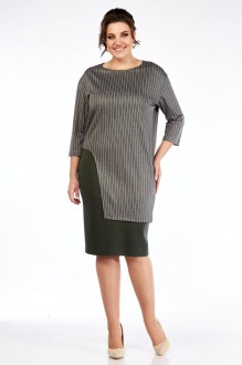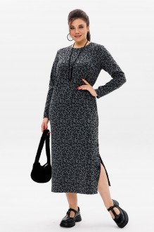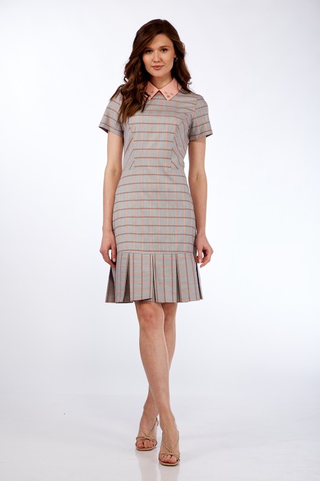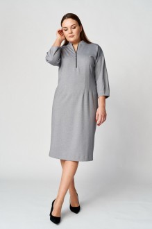 Платье женское, прилегающего силуэта, из текстильного материала. Вырез горловины обработан рубашечным воротником с отрезной стойкой. Перед и спинка платья с рельефными швами, идущими от пройм и переходящими по талии в боковые швы. Потайная застежка на тесьму - "молнию" в среднем шве спинки. Нижняя часть платья со встречнми складками.