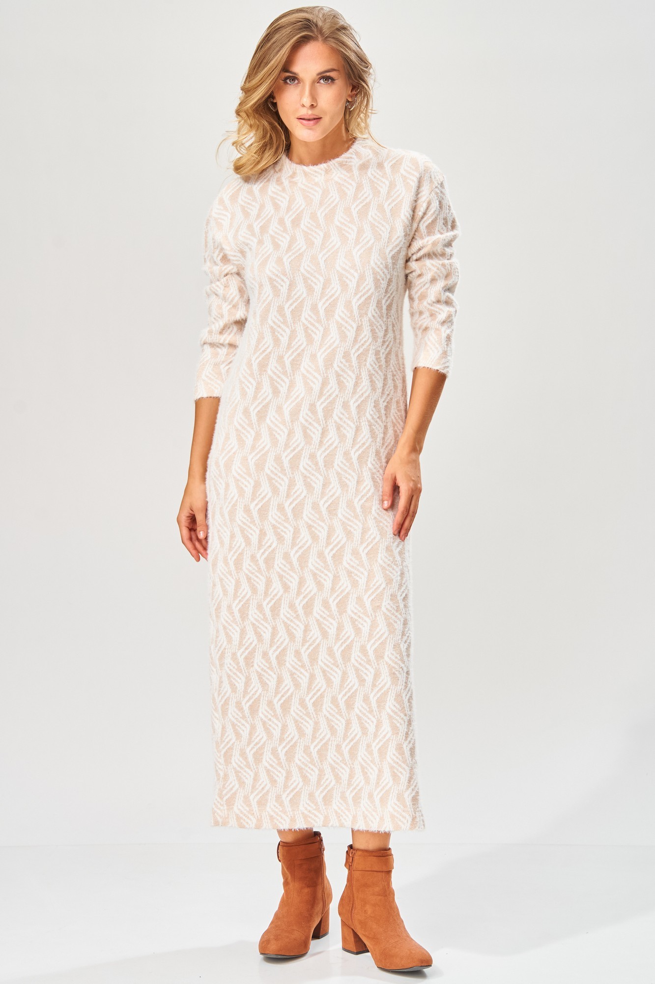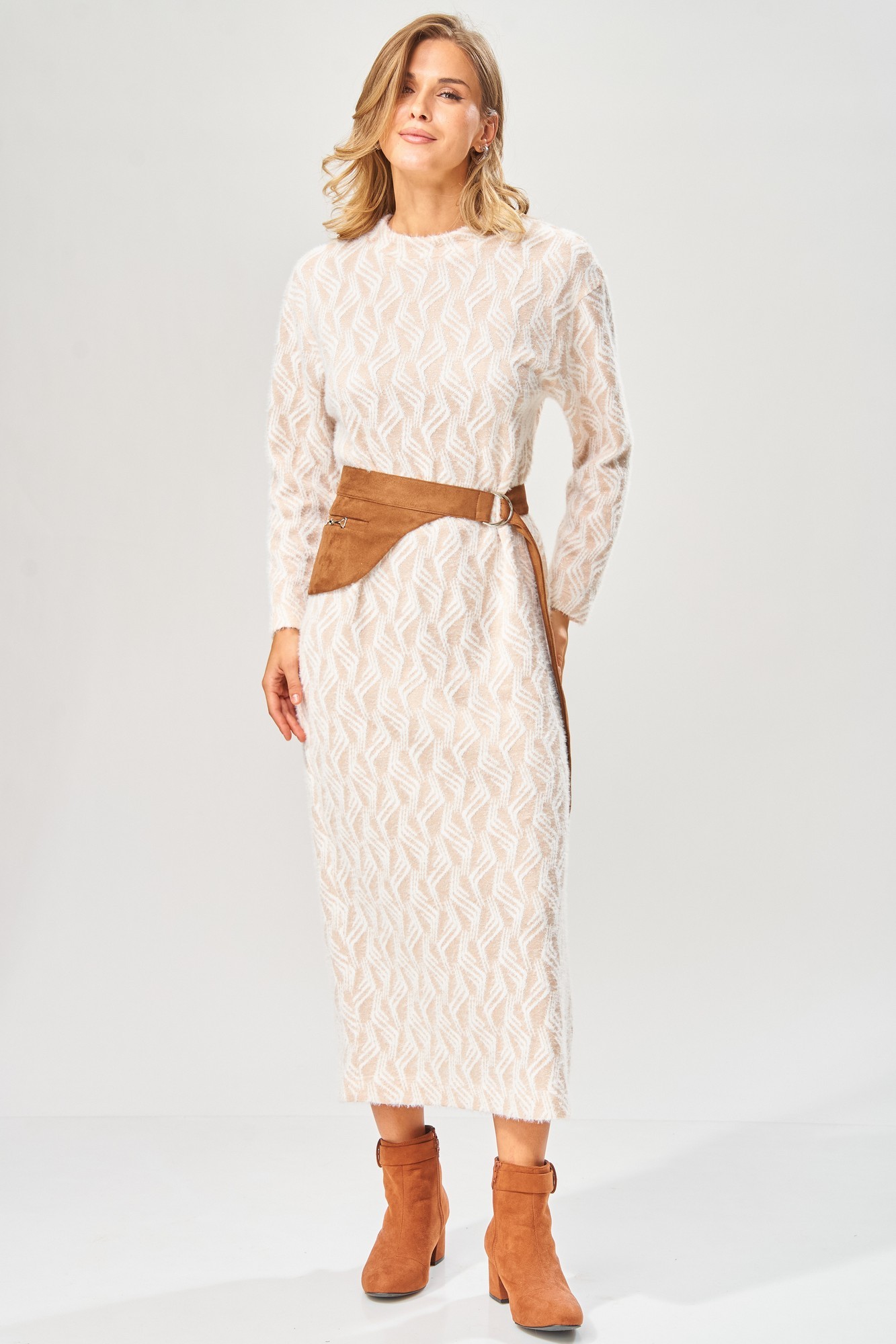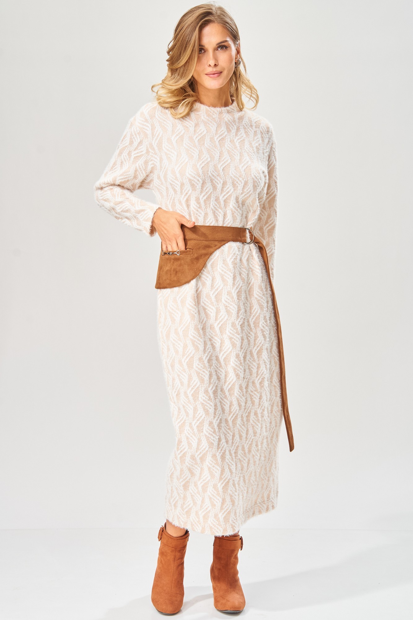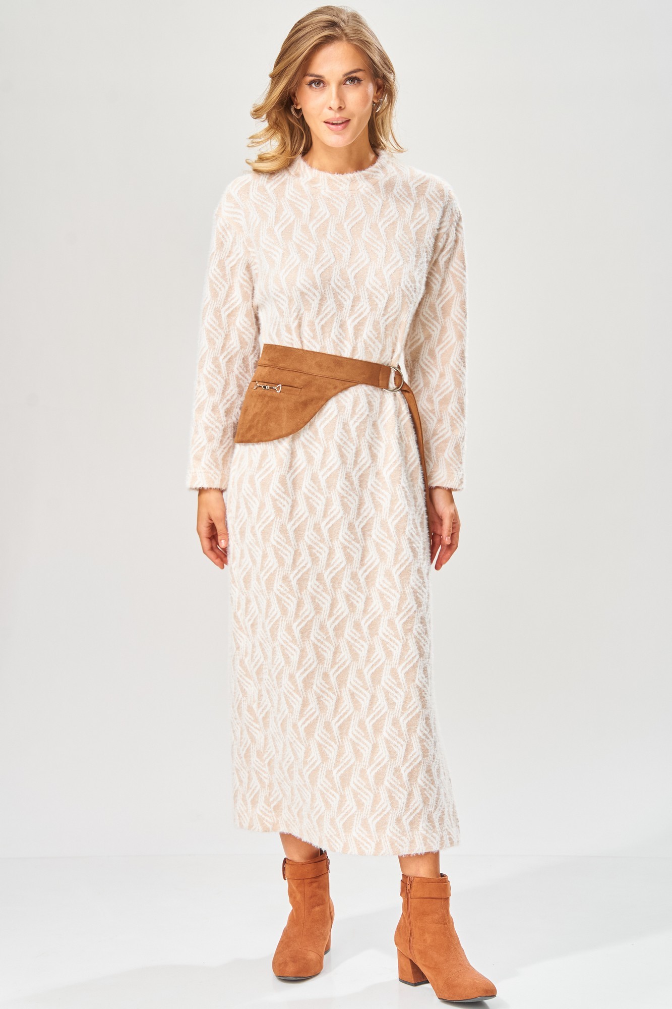 Трикотажное платье от LAIKONY прямого силуэта длиной макси со съемным поясом-карманом. Вырез горловины округлой формы с втачной бейкой. Перед и спинка цельные. Рукава втачные одношовные длинные, линия плеча спущена. В левом боковом шве обработан разрез. В комплекте съемный пояс с застежкой на пряжку. На съемном поясе обработан карман с листочкой с втачными концами. Трикотаж средней плотности, хорошо тянется. Декор может отличаться от представленного на фотографии. Уютное стильное повседневное платье длиной "в пол" с оригинальным поясом для осенне-зимнего сезона.