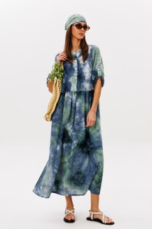 Восхитительное платье свободного силуэта с отрезной линией талии и рукавом укороченной длины. Полочка и спинка платья отрезные по линии талии. Спереди расположены наклонные горизонтальные нагрудные вытачки и фронтально-вертикальная бортовая застежка на петли/пуговицы; Горловина округлой формы. Спинка имеет отрезную горизонтальную кокетку. Рукав втачной, с предполагаемым отворотом, который поддерживает пата. Пата может быть закреплена на пуговицу. Длина рукава 38 см. Юбка платья А-силуэта на укороченной подкладке. По линии талии: умеренная сборка. В боковых швах расположены внутренние карманы и разрезы, высотой 30 см. Длина платья по спинке: в размерах 44-48: 126 см, в 50-54: 130 см. (фурнитура может отличаться от представленной на рекламном фотоматериале). Особые рекомендации: рекомендуется холодная деликатная ручная стирка, без использования отбеливающих СМС, без интенсивного трения. Сушка в вертикальном положении. ВТО с минимальным паром.