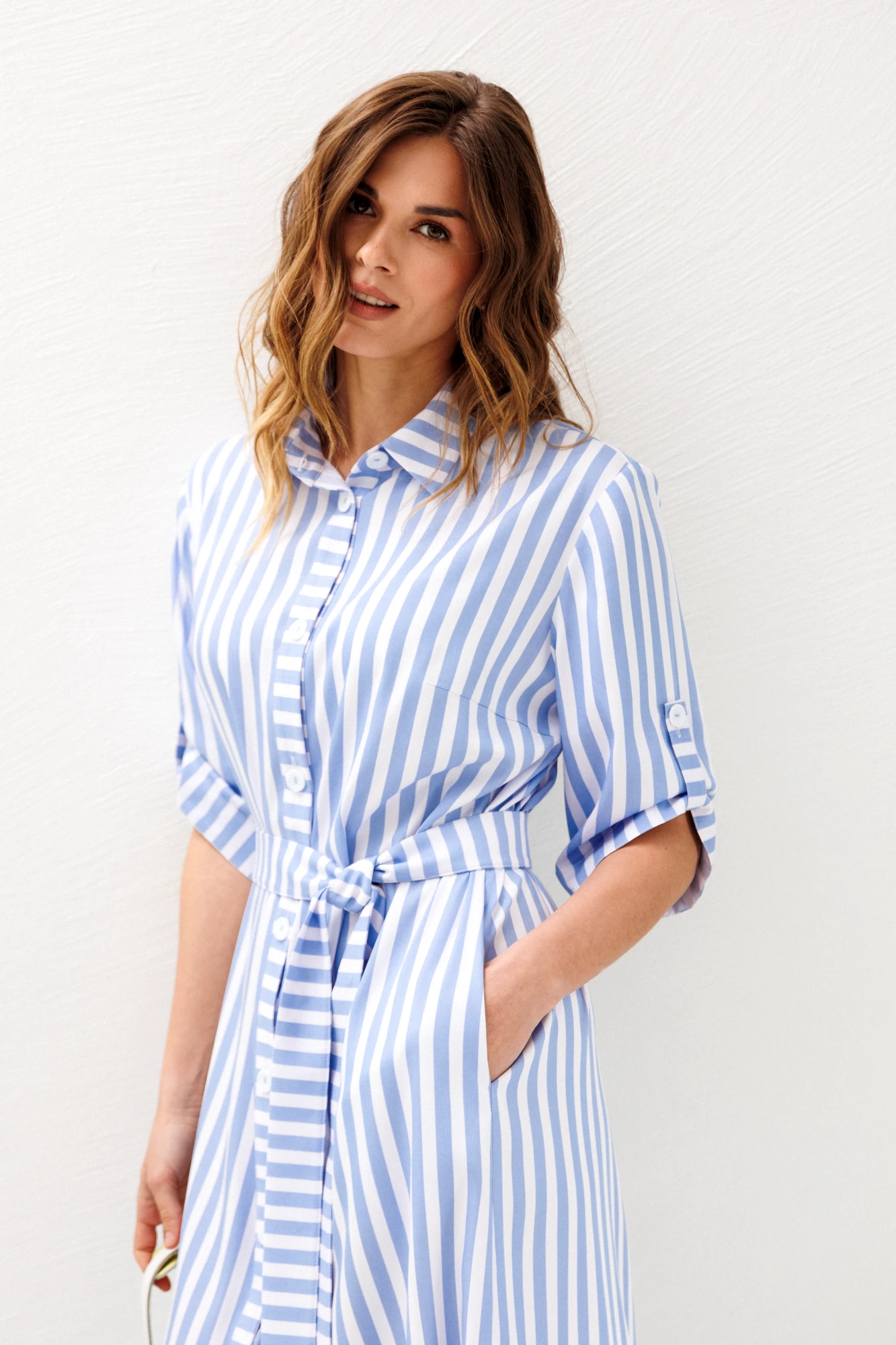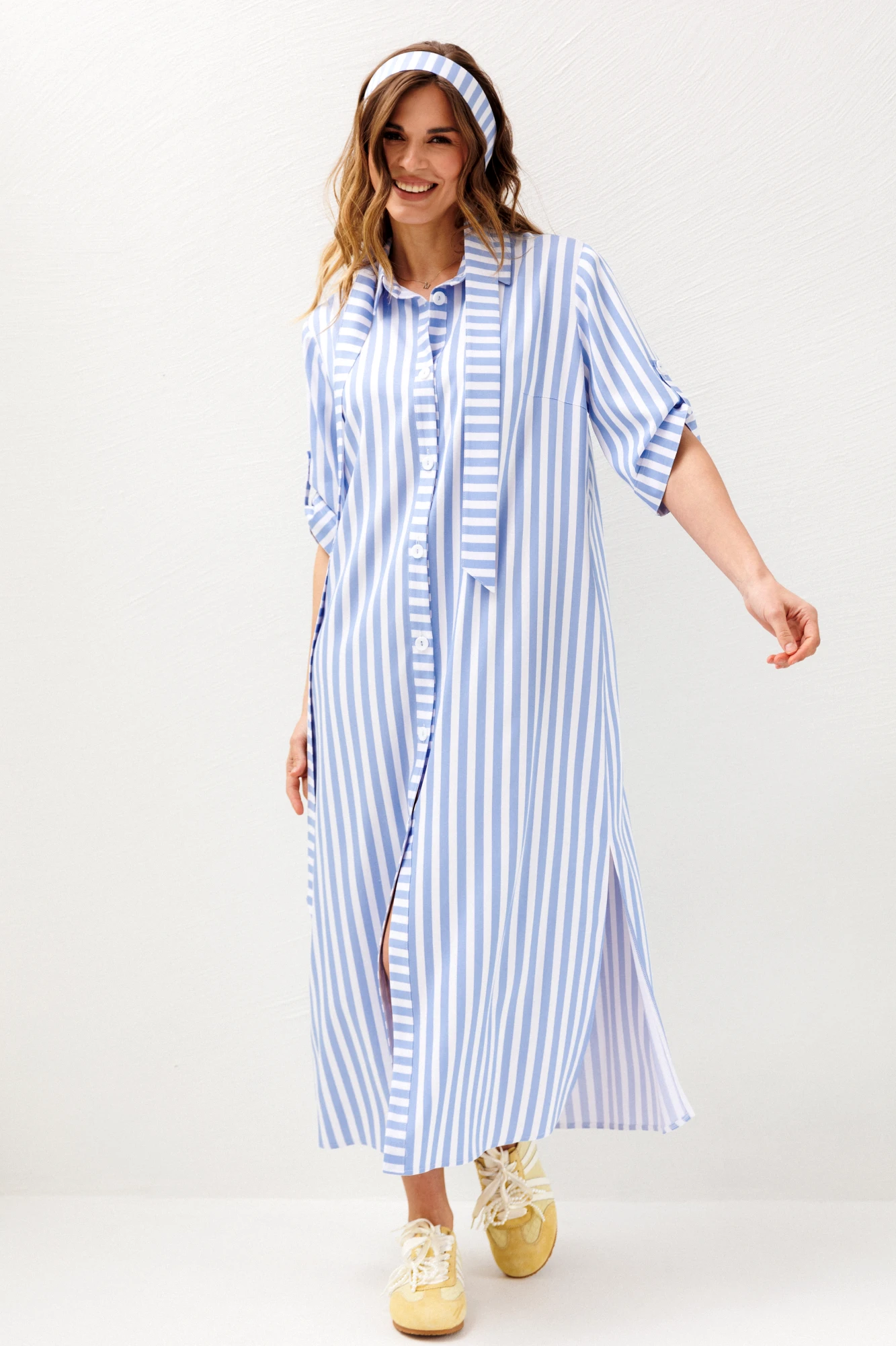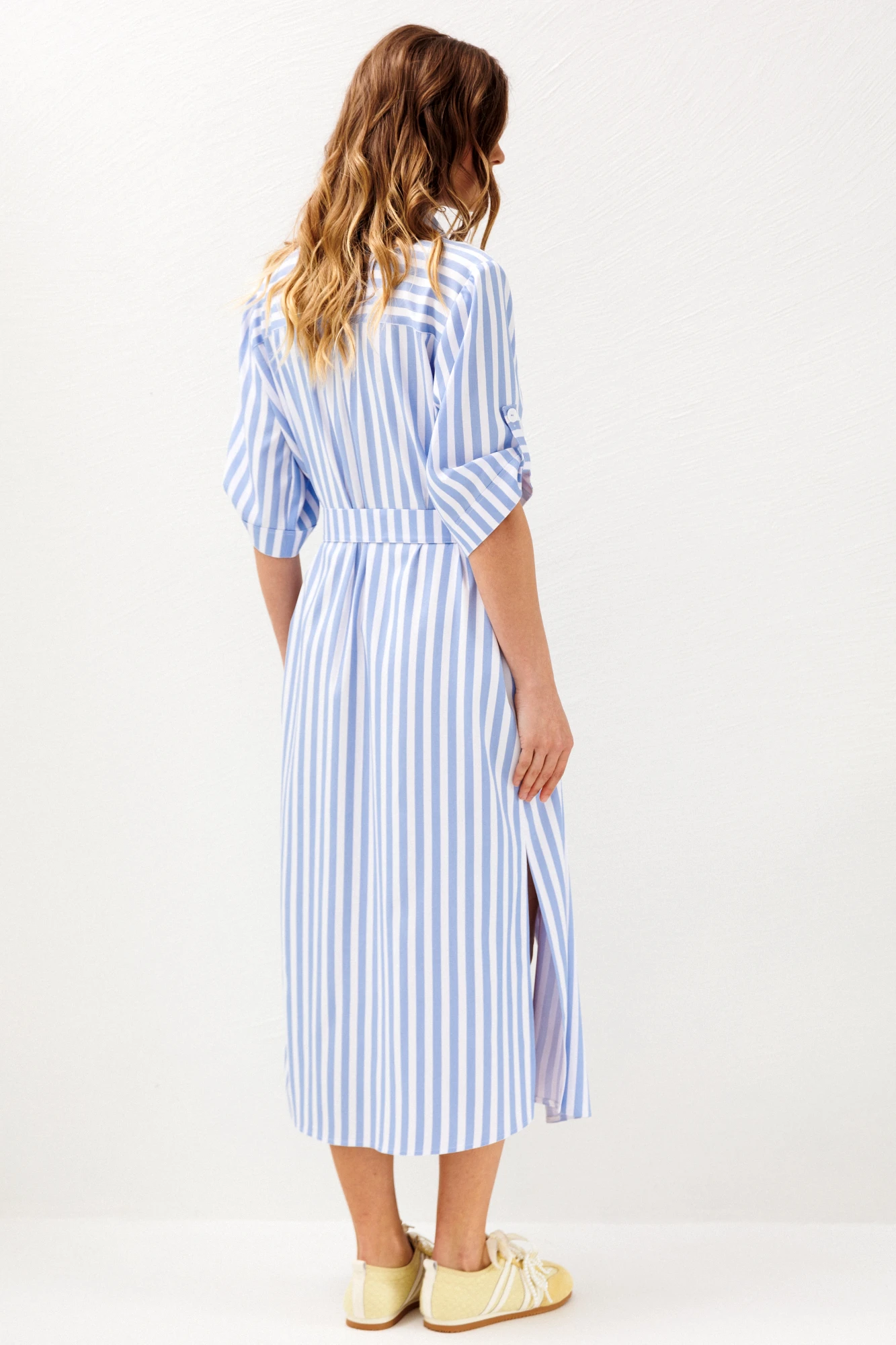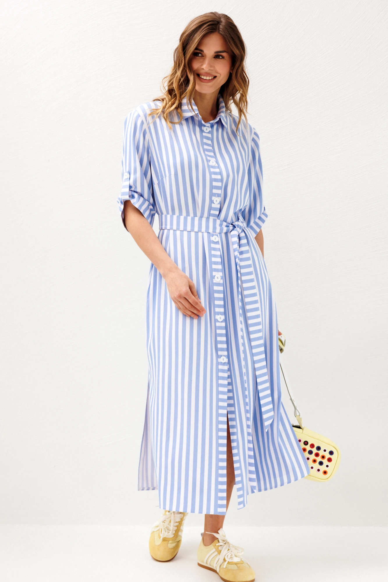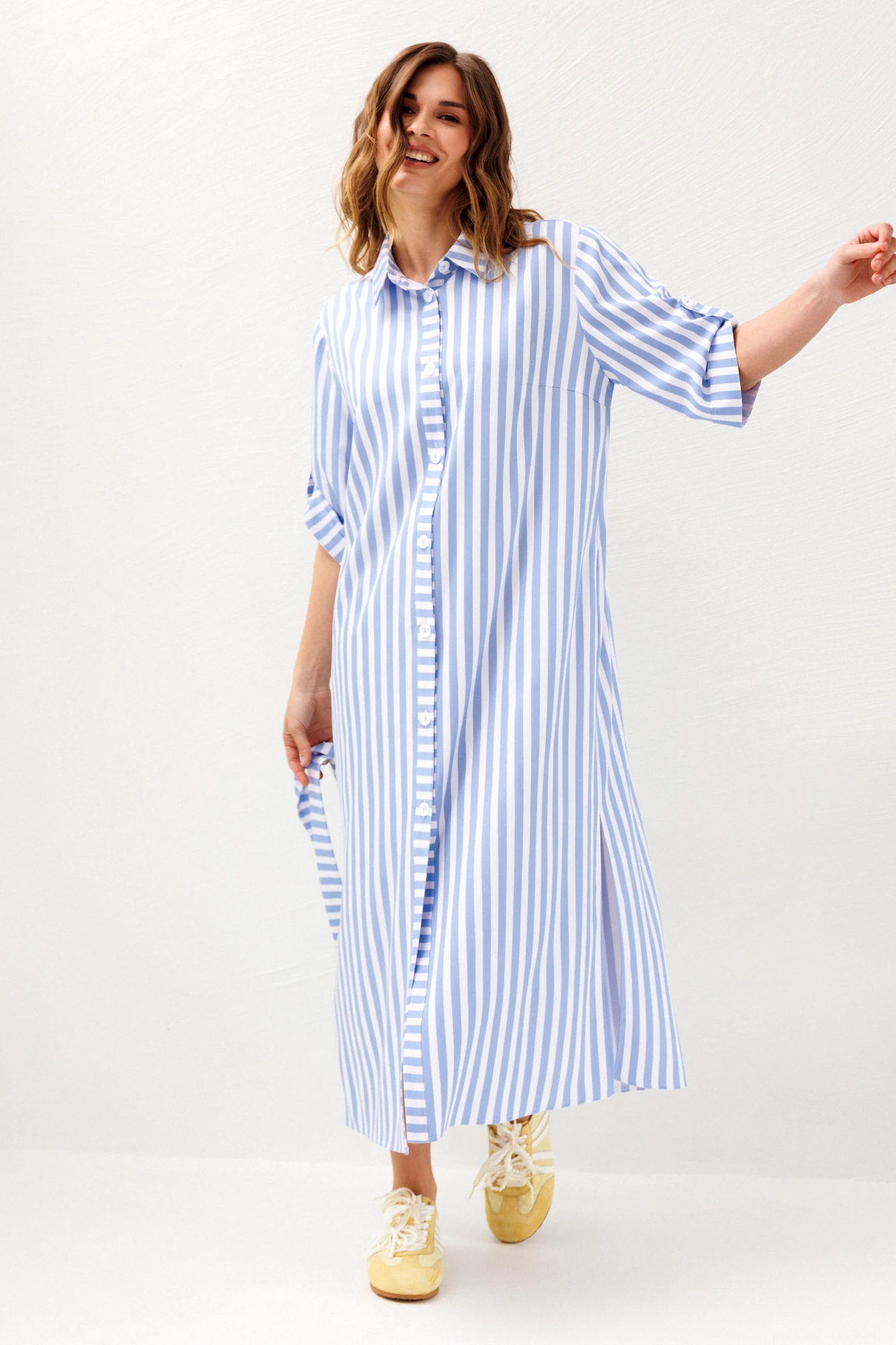 Платье Ларс Стиль 1232 молочно-голубое, принт полоса