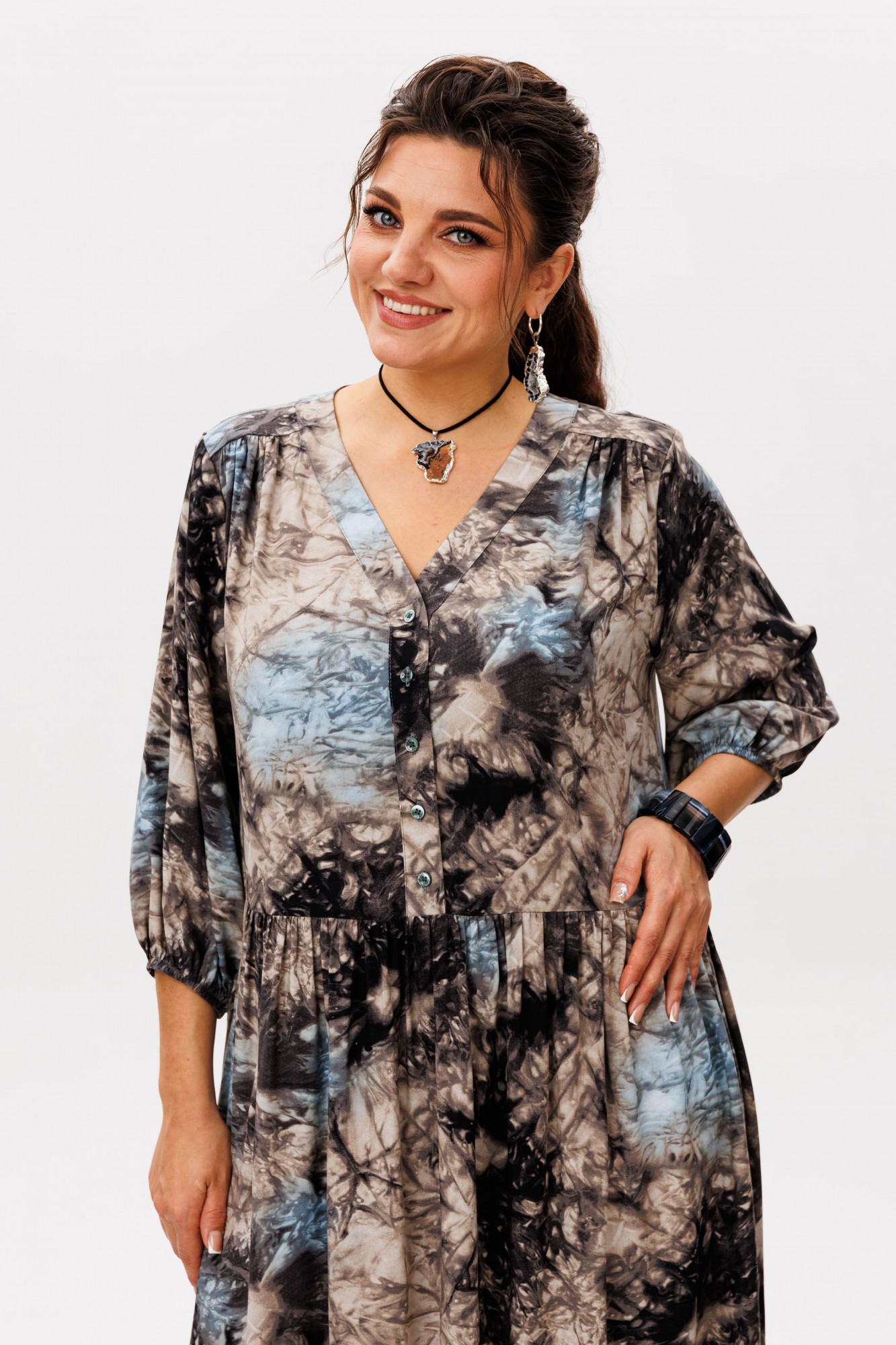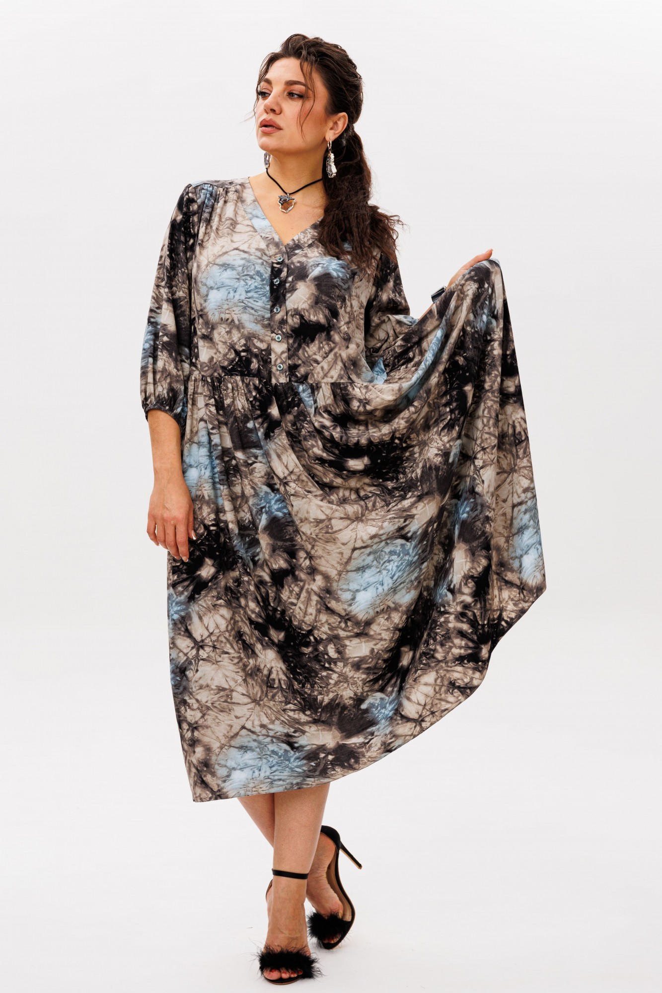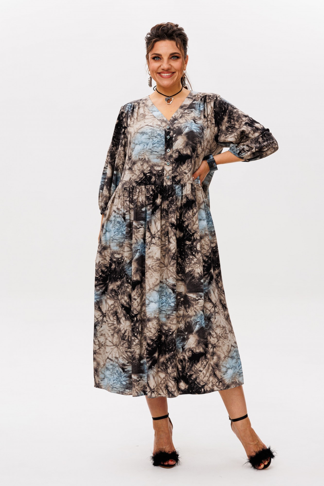 Очаровательное и элегантное платье из вискозы в цвете «галактика» - идеальный выбор для тех, кто стремится выглядеть непринужденно и стильно.