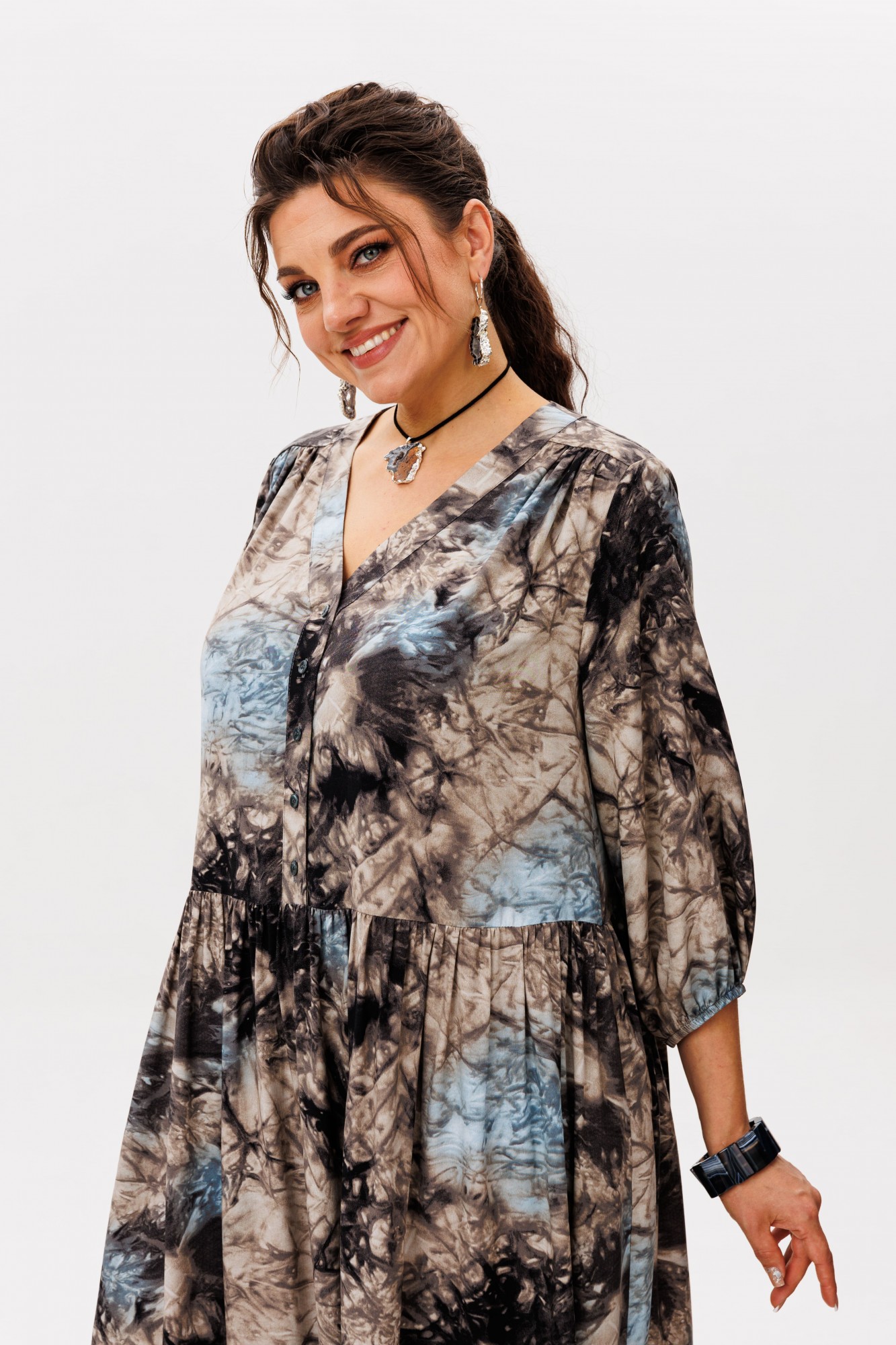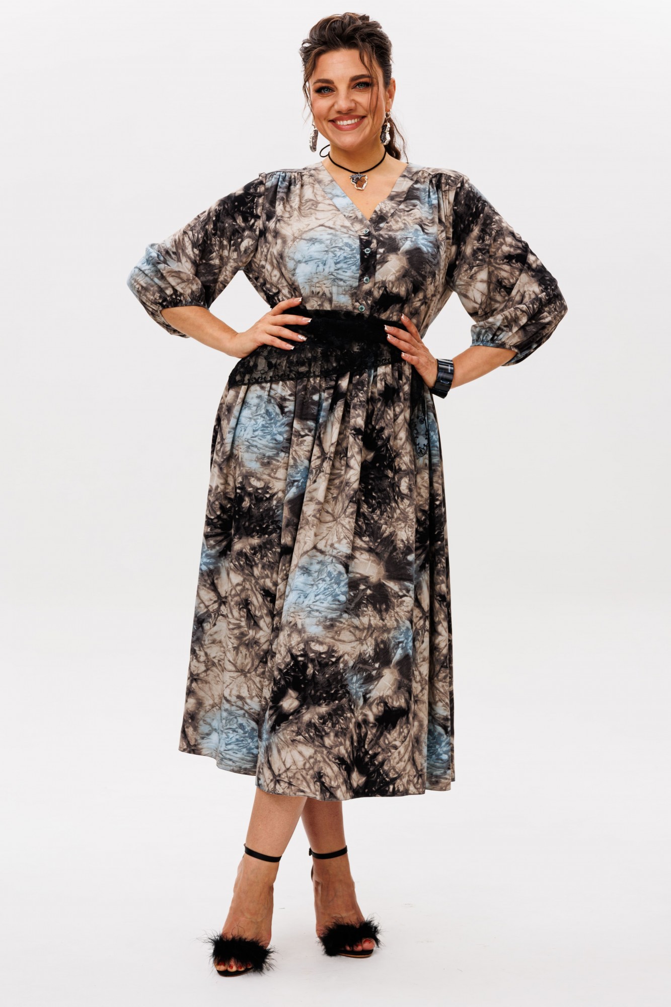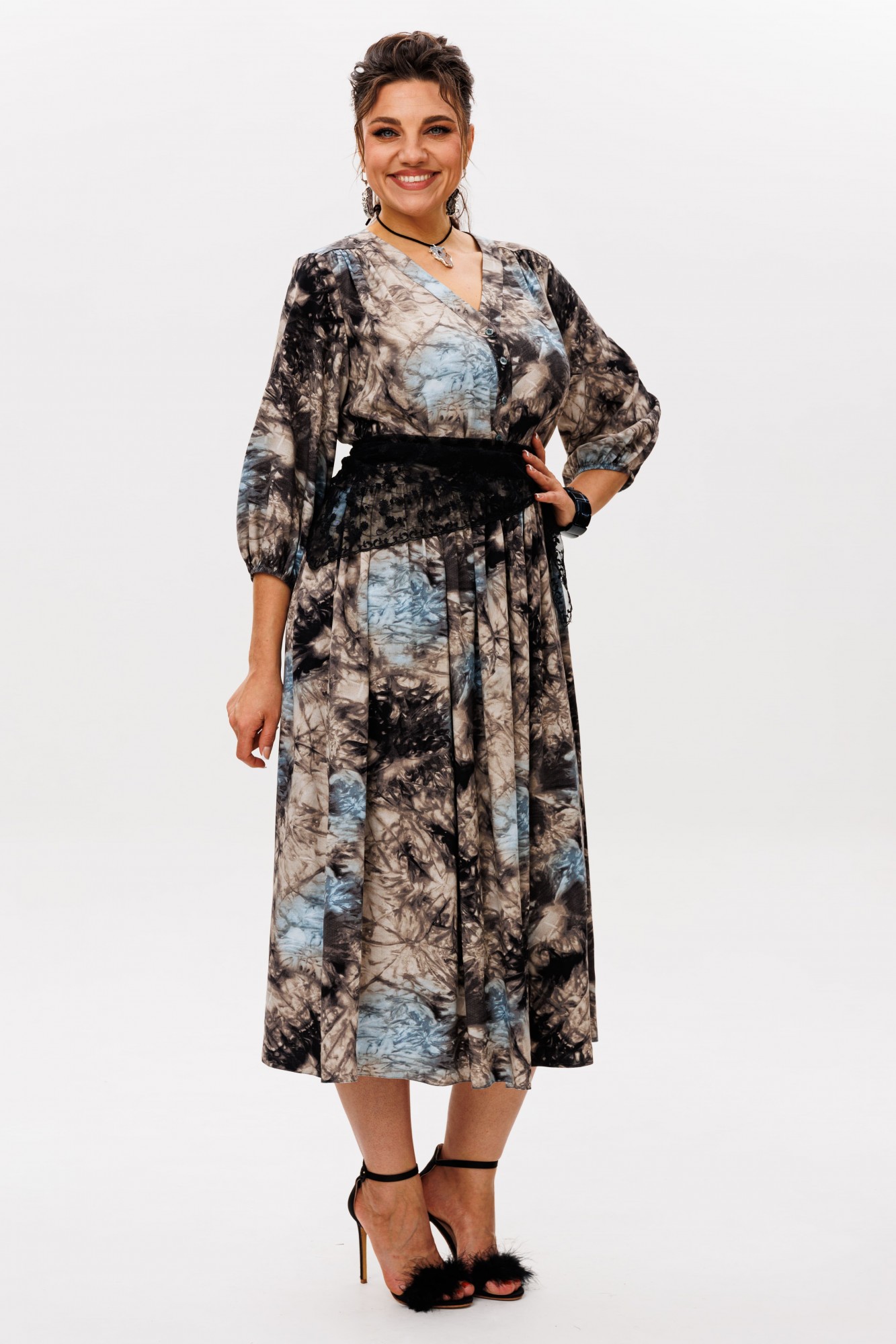 Очаровательное и элегантное платье из вискозы в цвете «галактика» - идеальный выбор для тех, кто стремится выглядеть непринужденно и стильно.