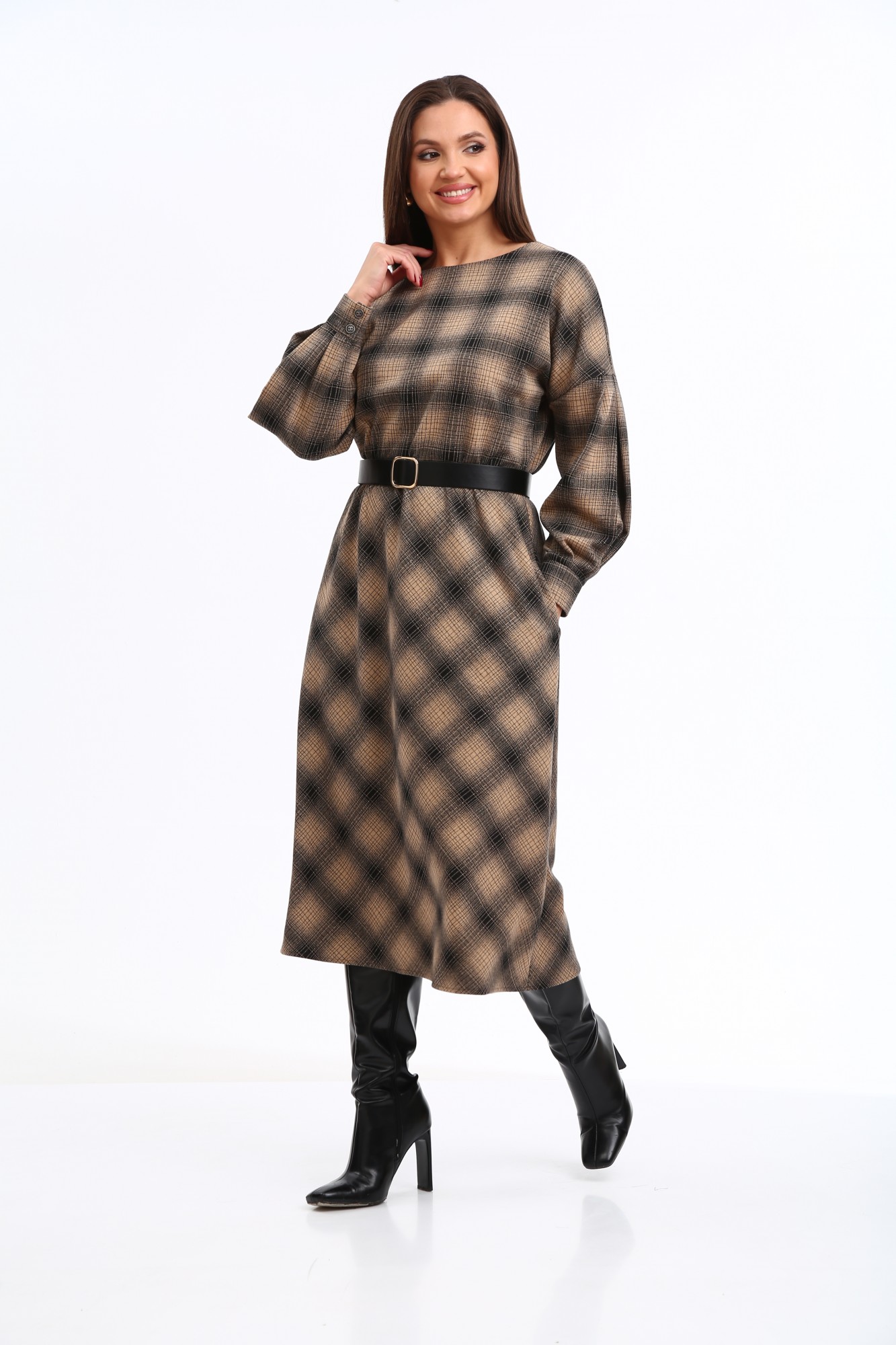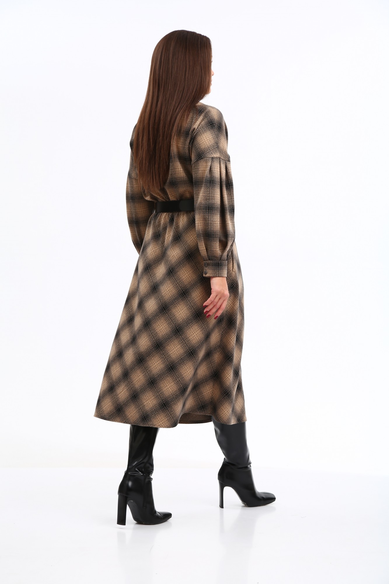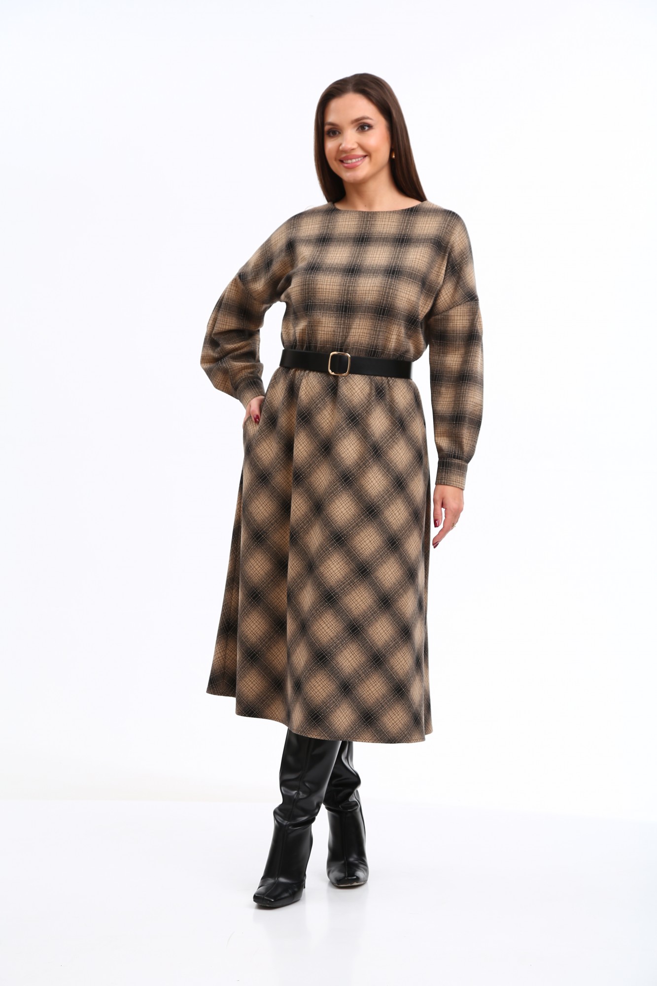 Уютное трикотажное платье в клетку с 3D эффектом в трендовой расцветке, безусловно, станет фаворитом в Вашем гардеробе. Изделие выполнено из высококачественного турецкого, приятного к телу вискозного трикотажа. Платье А-образного силуэта, отрезное по линии талии. Рукава спущенные с активными защипами, полной длины, с притачными манжетами с застежкой на петли-пуговицы. Горловина мягкой округлой формы. Нижняя часть платья покроя трапеция. В боковых швах предусмотрены функциональные карманы. В области талии платье присобрано на эластичную тесьму. Платье дополнено стильным съёмным ремнем. Данное изделие легко можно использовать в повседневной жизни – оно также идеально впишется в деловой образ современной женщины.
