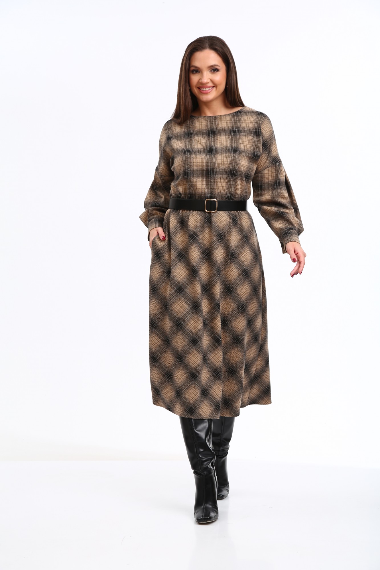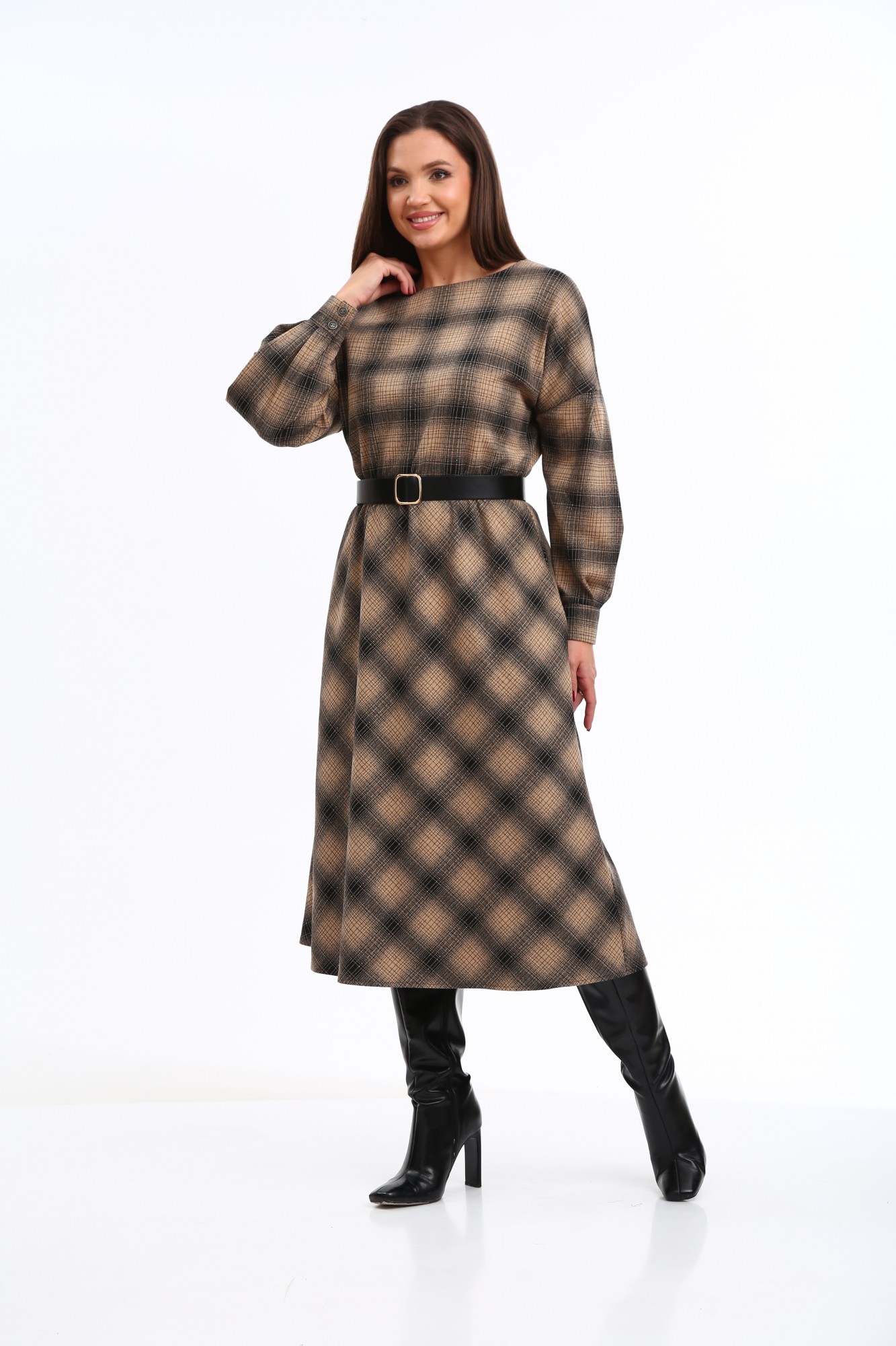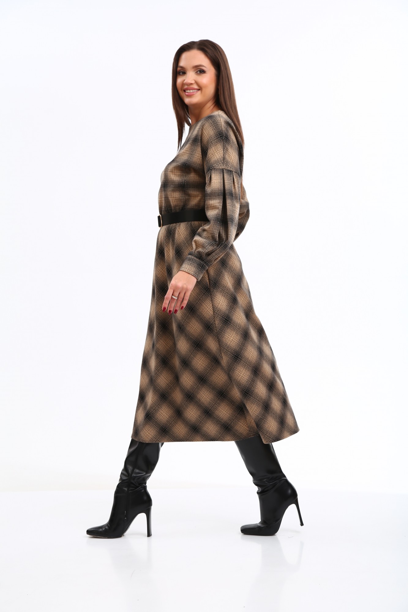 Уютное трикотажное платье в клетку с 3D эффектом в трендовой расцветке, безусловно, станет фаворитом в Вашем гардеробе. Изделие выполнено из высококачественного турецкого, приятного к телу вискозного трикотажа. Платье А-образного силуэта, отрезное по линии талии. Рукава спущенные с активными защипами, полной длины, с притачными манжетами с застежкой на петли-пуговицы. Горловина мягкой округлой формы. Нижняя часть платья покроя трапеция. В боковых швах предусмотрены функциональные карманы. В области талии платье присобрано на эластичную тесьму. Платье дополнено стильным съёмным ремнем. Данное изделие легко можно использовать в повседневной жизни – оно также идеально впишется в деловой образ современной женщины.