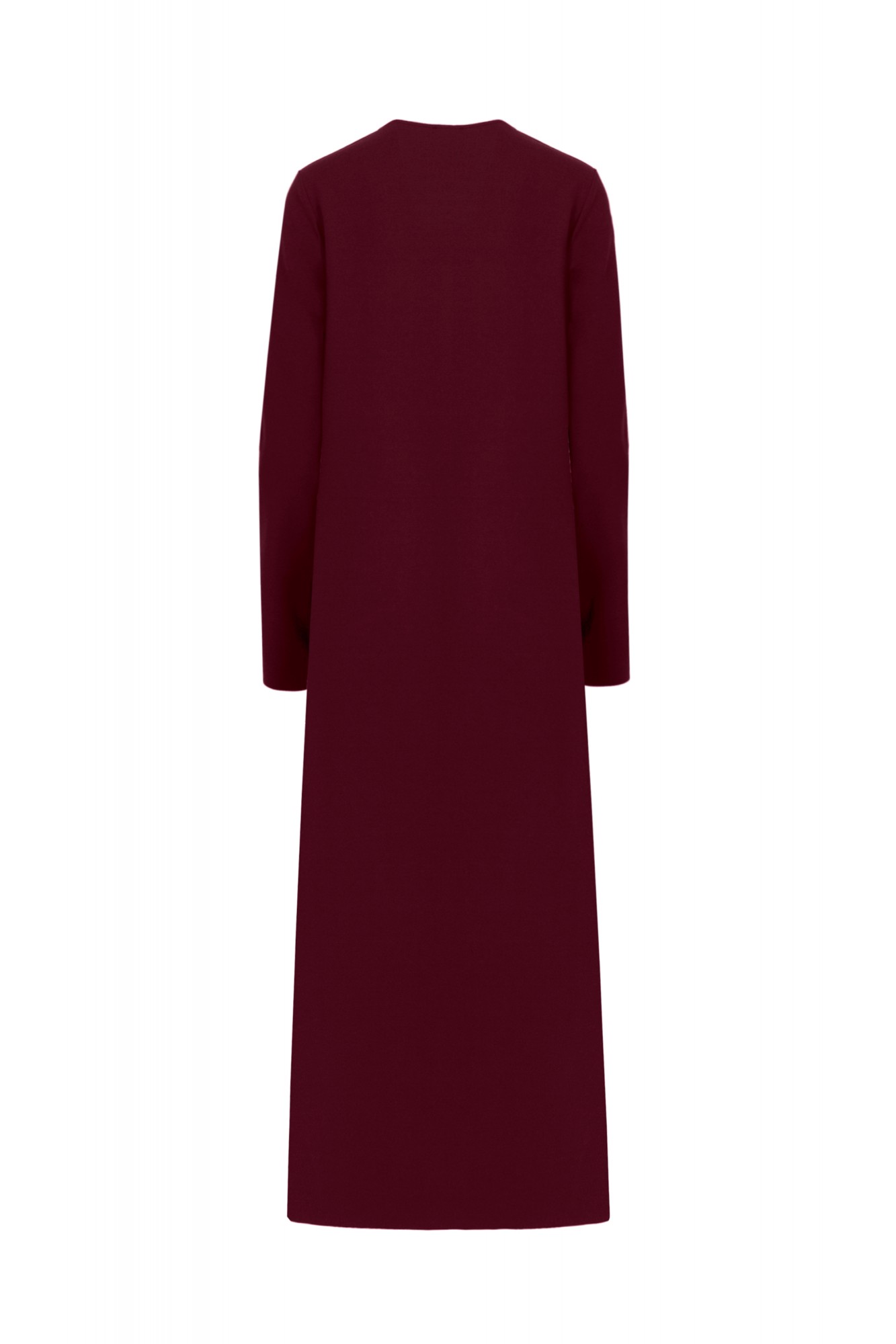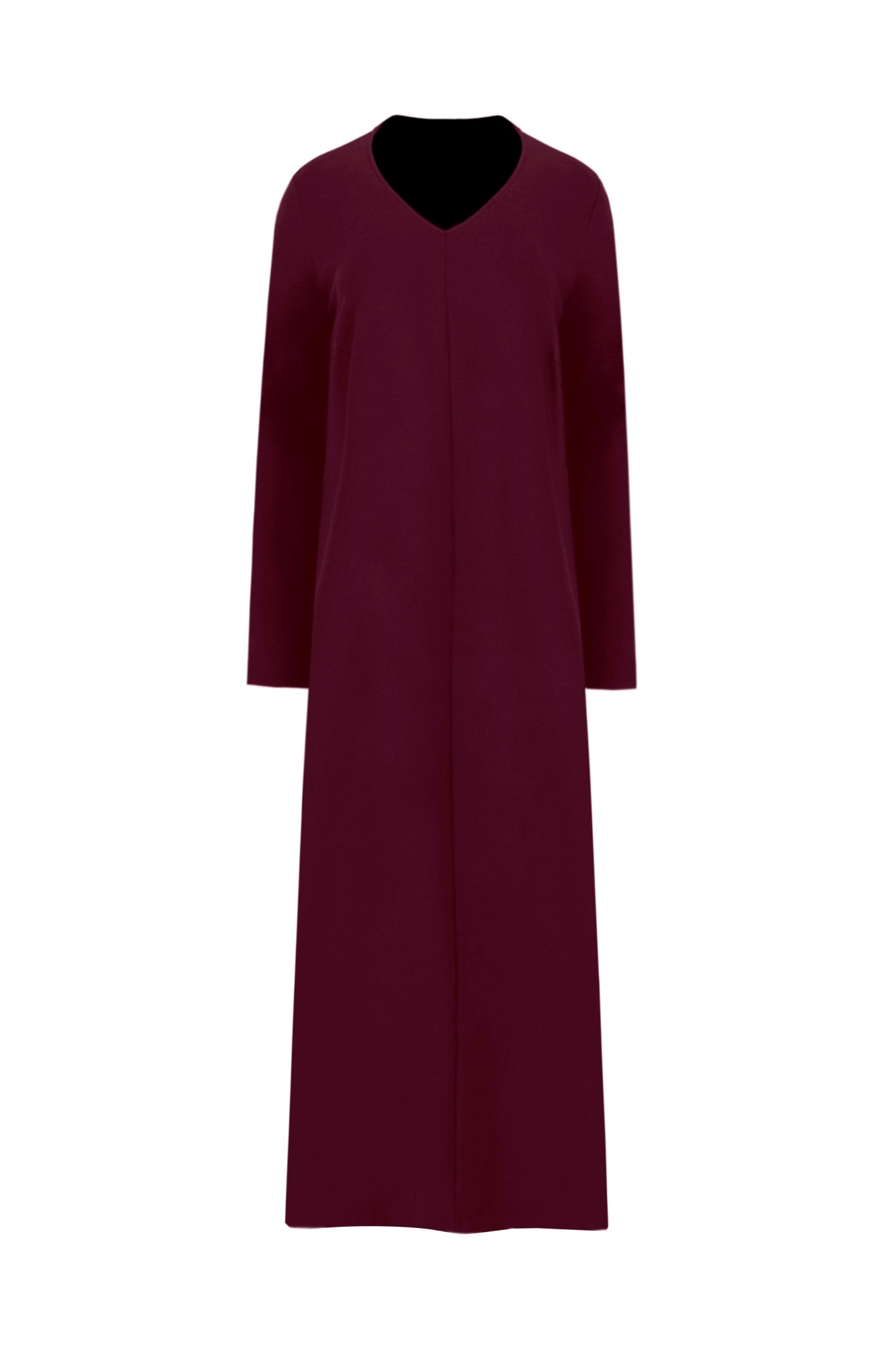 Платье женское расширенное к низу, длинное из трикотажного полотна. По боковым швам разрезы. Рукава длинные, горловина окантована.