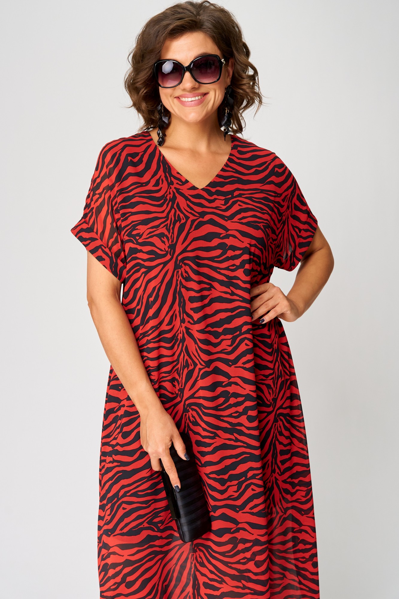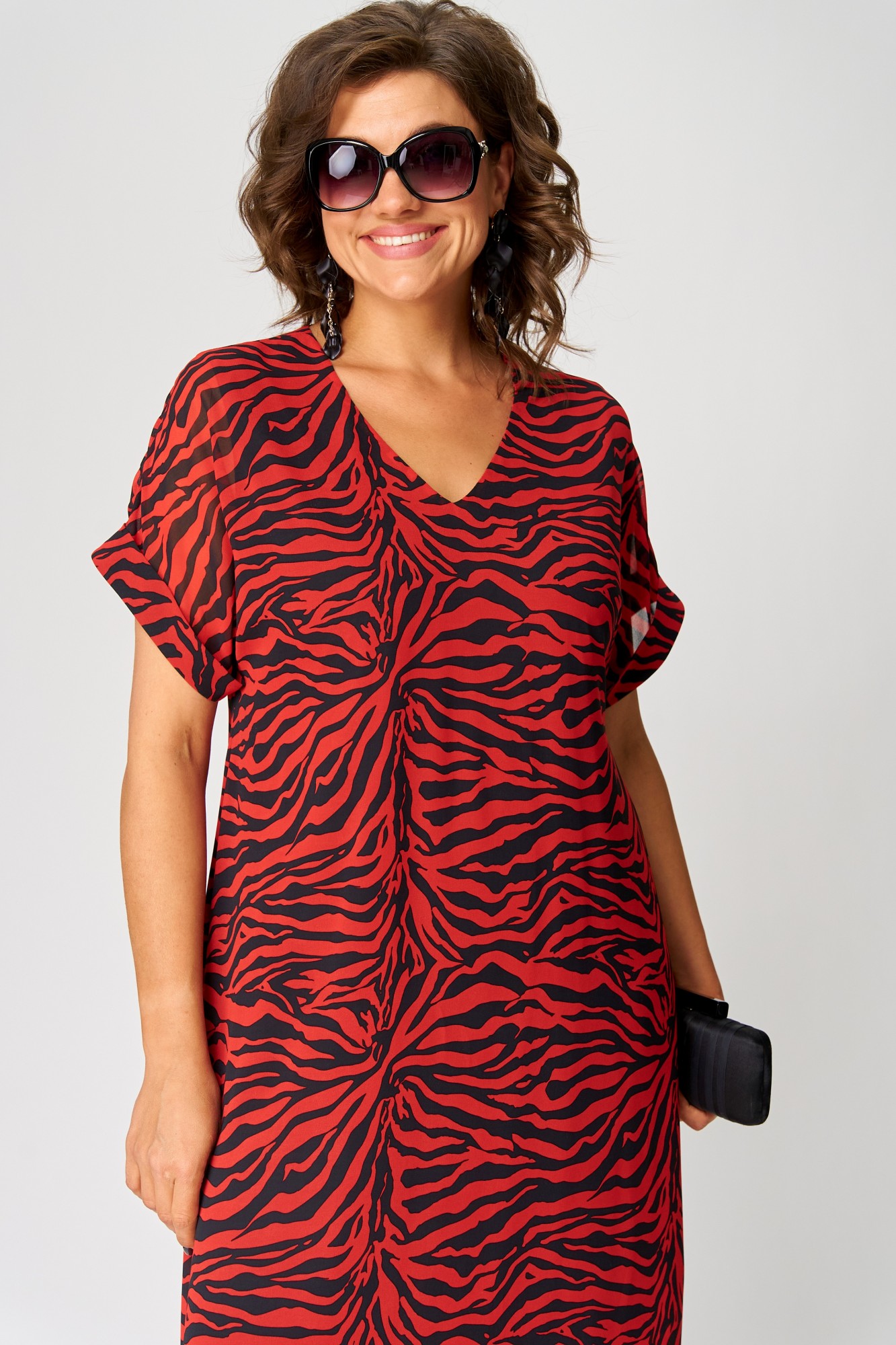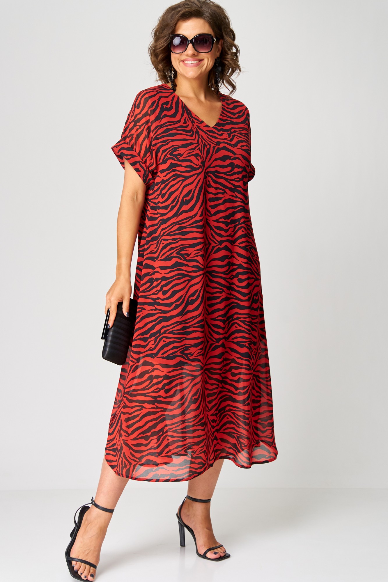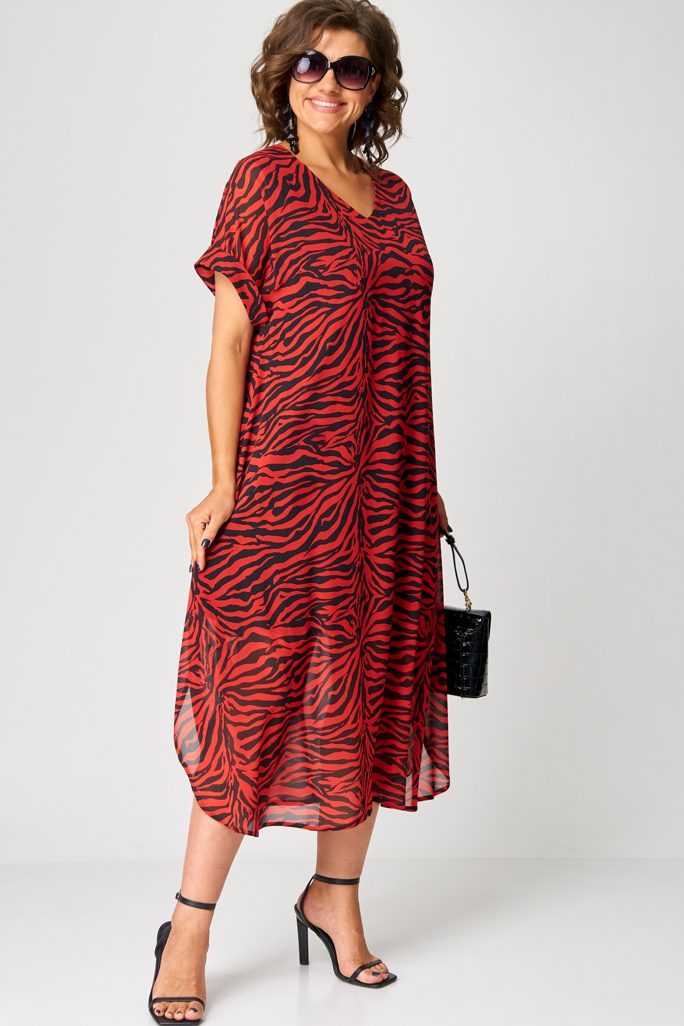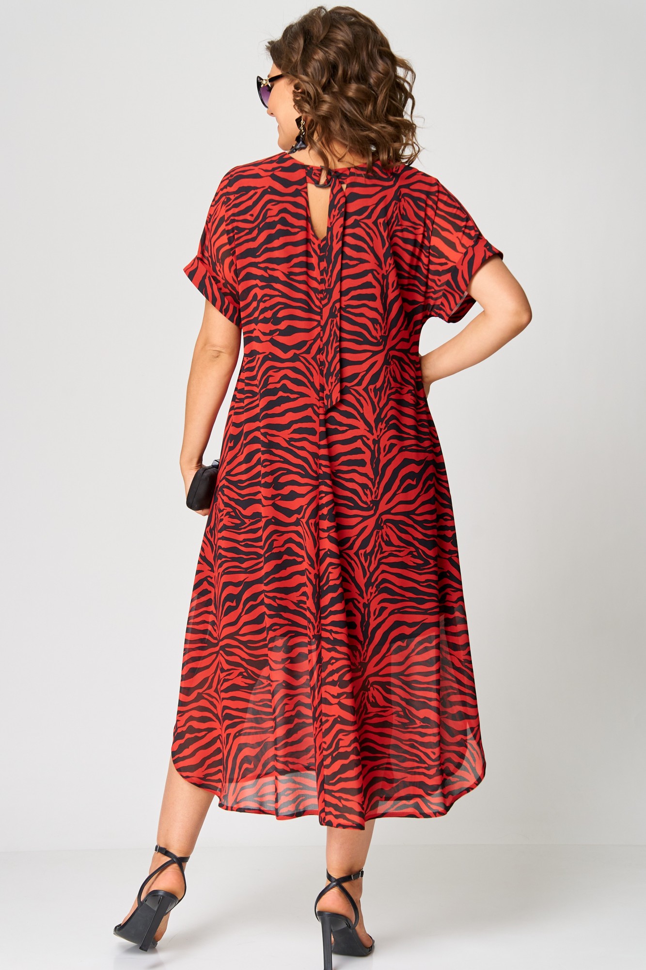 Платье женское нарядно-повседневное полуприлегающего силуэта расширенное к низу на подкладке. Выполнено из шифона. Подкладка трикотажная. Вырез горловины V-образный на обтачке, рукав спущенный по низу на притачной манжете. Низ фигурный. В боковых швах обработаны разрезы. Горловина спинки с фигурным вырезом и пряжкой. декором платья служит дизайн самой ткани.