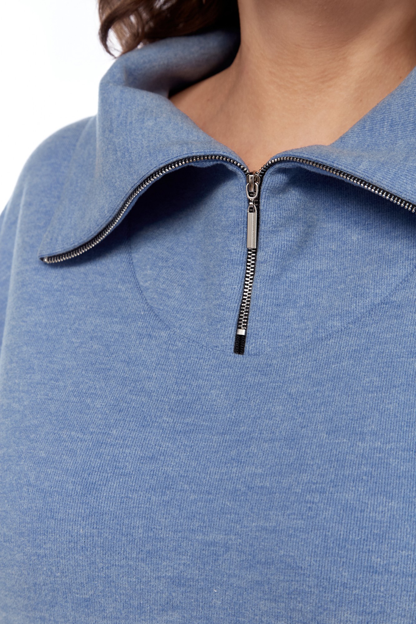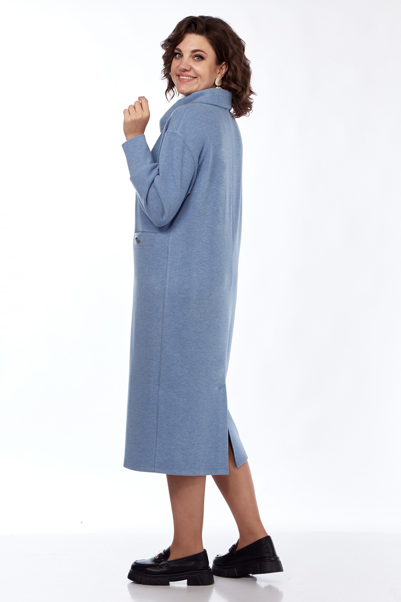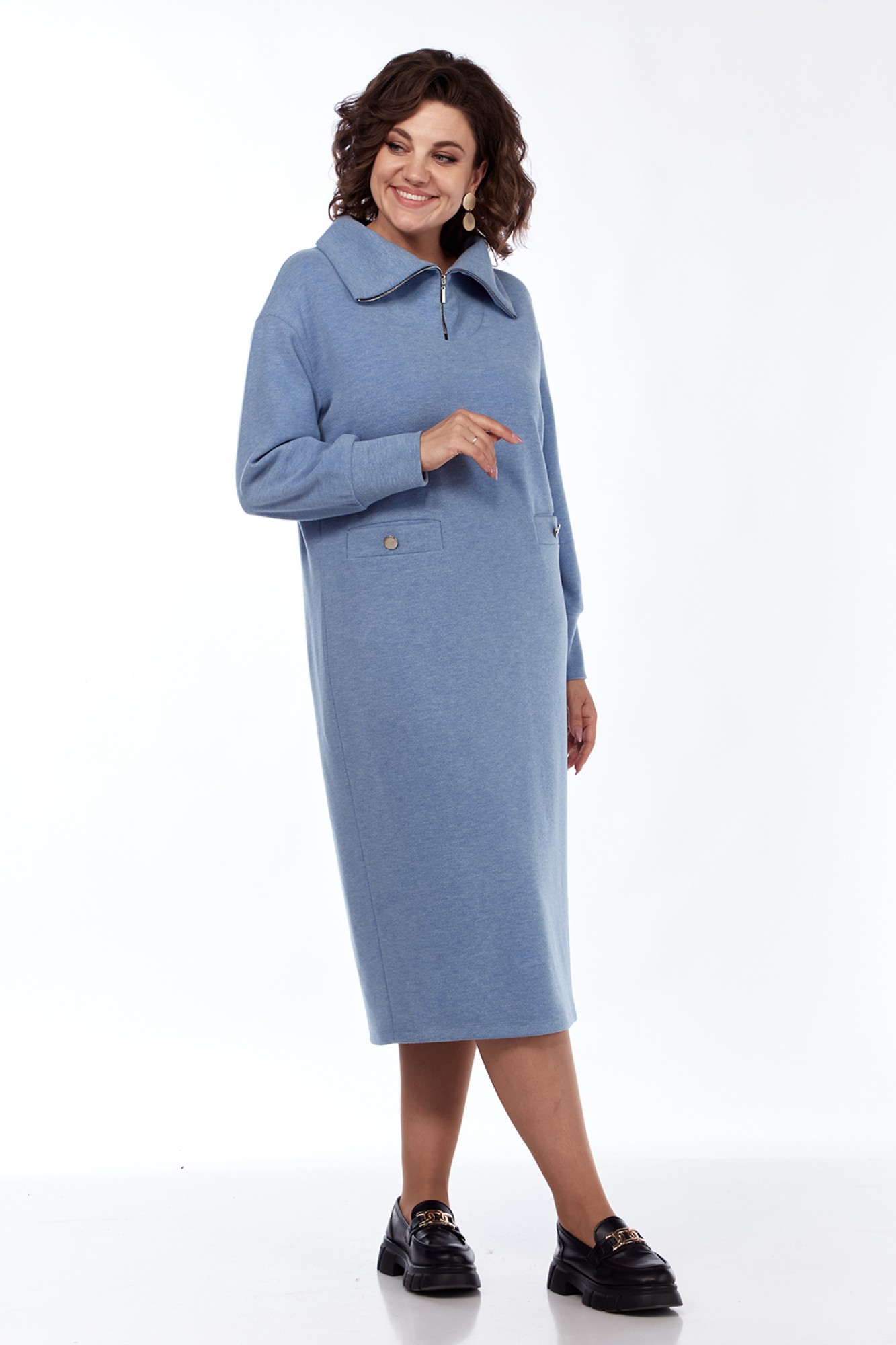 Платье женское повседневное выполнено из трикотажного полотна. Платье свободного силуэта с высоким воротником стойка на молнии и фигурным подрезом в области горловины. Карманы прорезные с листочкой, дополнены пуговицами. Рукава спущенные на притачном манжете. Спинка со средним швом и шлицей.