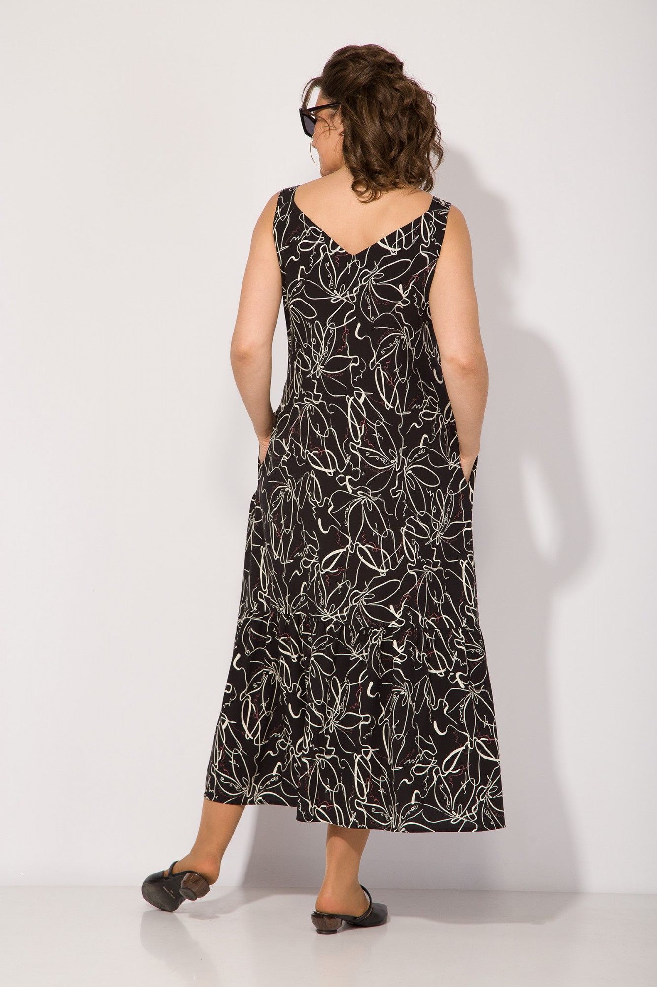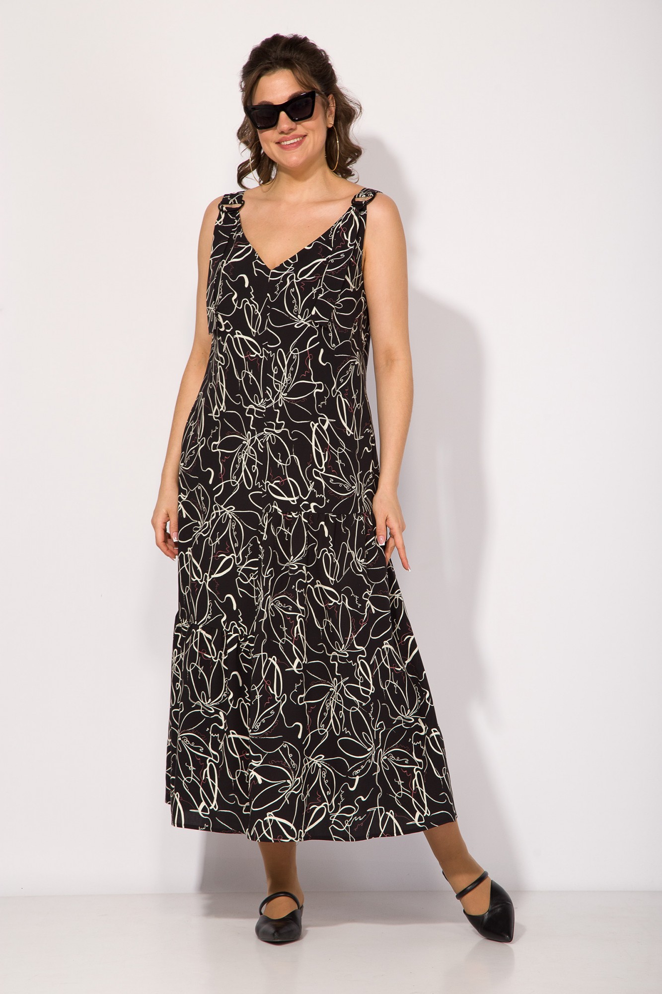 Платье-сарафан из хлопкового штапеля трапециевидного силуэта. Широкие шлевки-лямки регулируются по длине с помощью металлических полуколец. В платье предусмотрены боковые карманы. Модель выполнена из хлопкового штапеля с оригинальным рисунком. Идеальный вариант для жаркой, солнечной погоды!