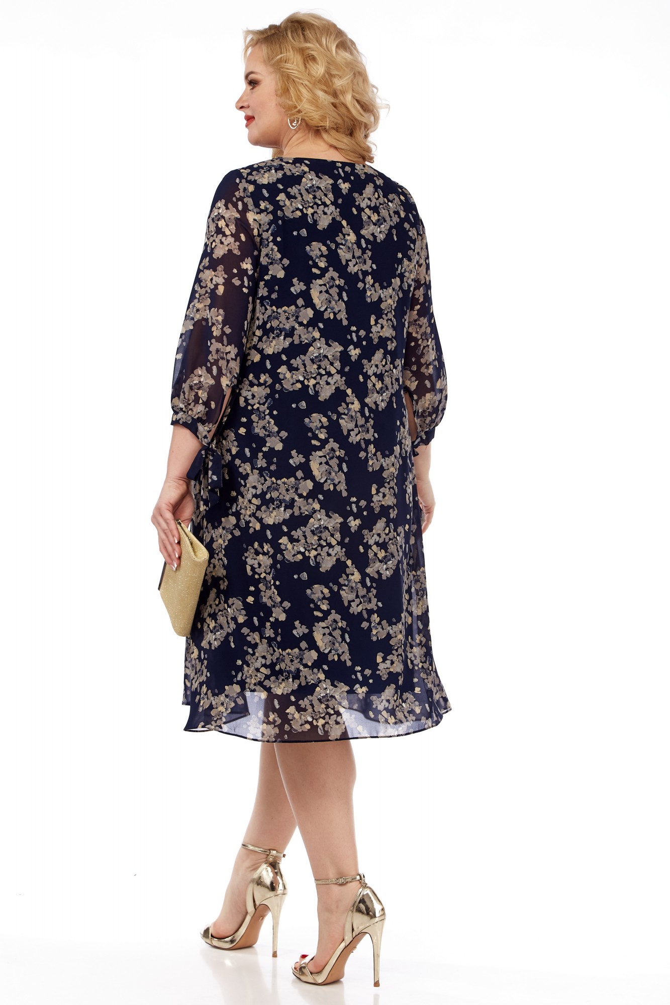 Нарядное двухслойное платье на облегченной подкладке — идеально подойдёт для любых торжеств. Интересная расцветка, легкий и струящийся шифон, а завязки на рукавах — сделают изделие еще более выразительным. Платье с округлой горловиной, длина ниже колена и клешеный трапециевидный крой — подчеркнут Ваши достоинства и не будет сковывать движения. Платье прекрасно дополняется различными аксессуарами. Длина изделия от горловины 105 см (+-1 см), длина рукава 54 см. Изделие подойдет на рост 170 см.