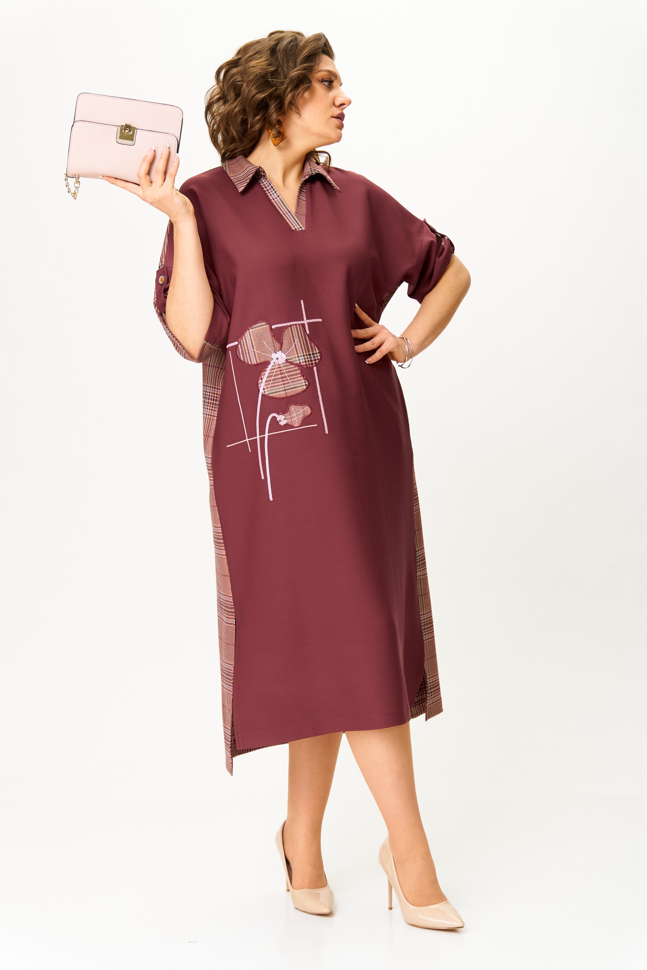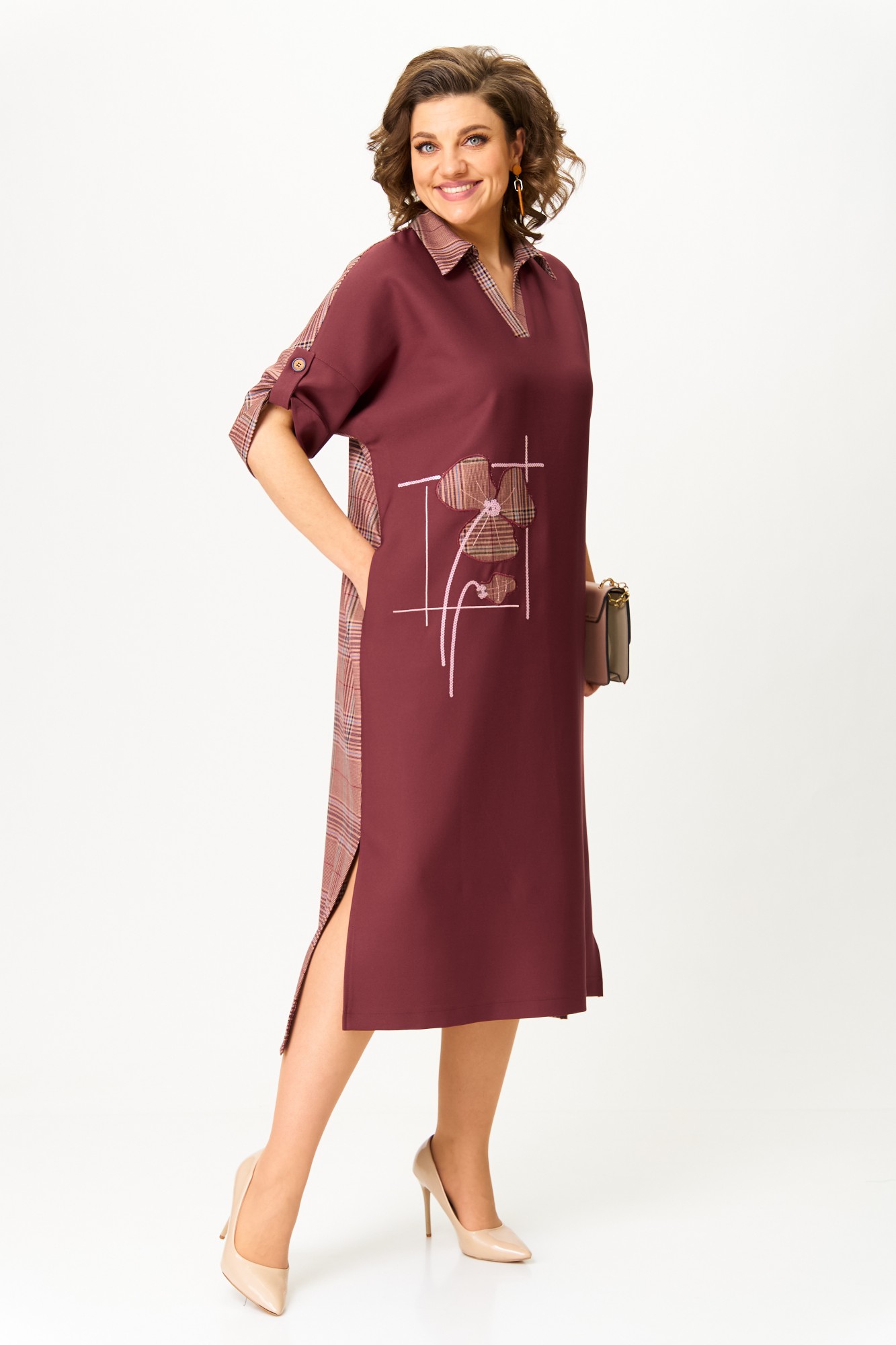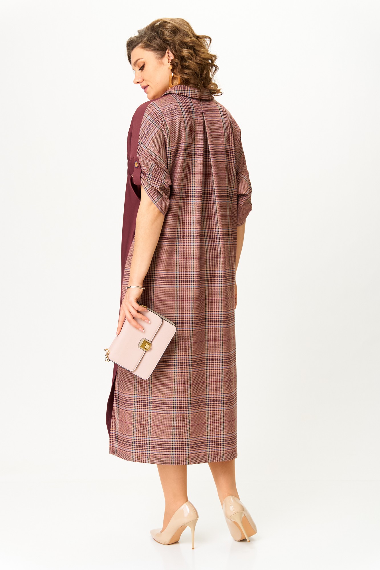 Универсальное платье в стиле «casual». Изделие выполнено из двух скомпонованных материалов — однотона и клетки. Перед и спинка цельнокроеные, спинка длиннее переда. Горловина с рубашечным воротником и V-образным вырезом. Плечо спущенное, рукав втачной длиной 3/4, застегивающийся на пату и пуговицу. По верху спинки имеется стачная встречная складка, благодаря которой имеется небольшое клешение. По переду платье украшено вышивкой из пайеток и ткани-компаньона. В боковых швах имеются карманы, а также боковые разрезы. Изделие может сочетаться как с кедами, лоферами, так и туфлями. Универсальность и практичность платья сделают его любимым в Вашем гардеробе.