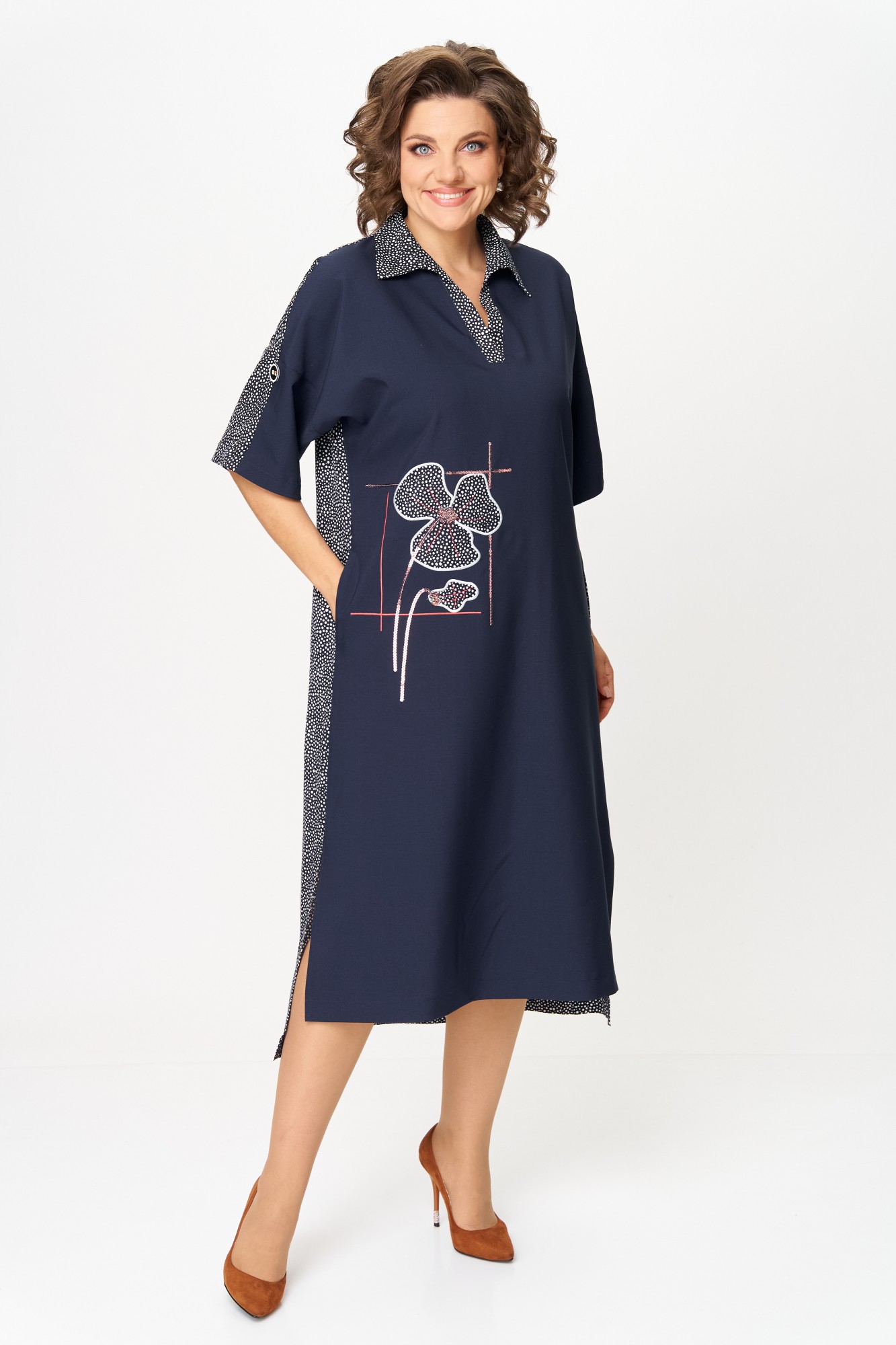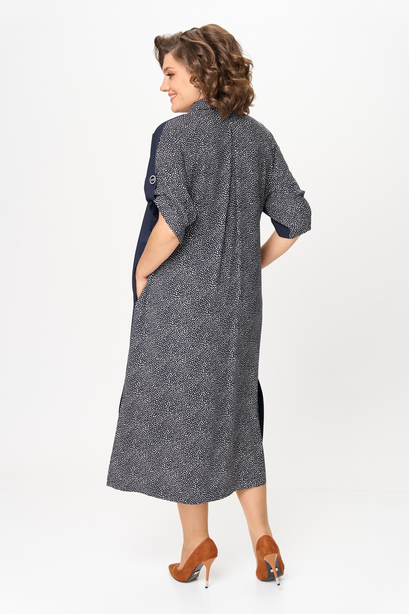 Универсальное платье в стиле «casual» — идеальный выбор для повседневных образов. Изделие выполнено из двух гармонично сочетающихся материалов, создающих комфорт и стиль. Перед и спинка — цельнокроеные, при этом спинка чуть длиннее переда для элегантной посадки. Горловина украшена классическим рубашечным воротником и V-образным вырезом, добавляющим образу свежести.