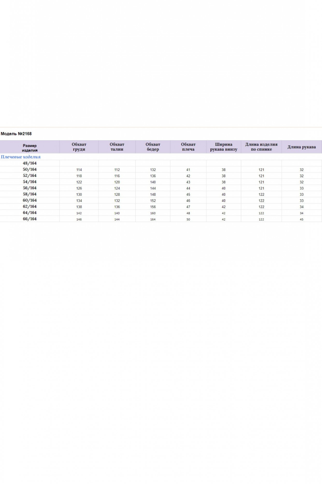 Таблица размеров