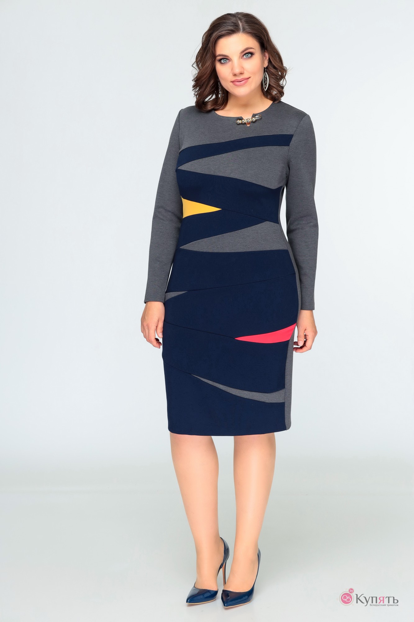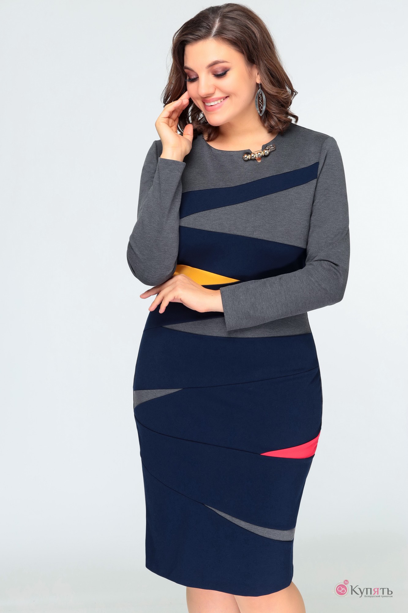 Платье Swallow 401 серый/синий/горчица/ коралл