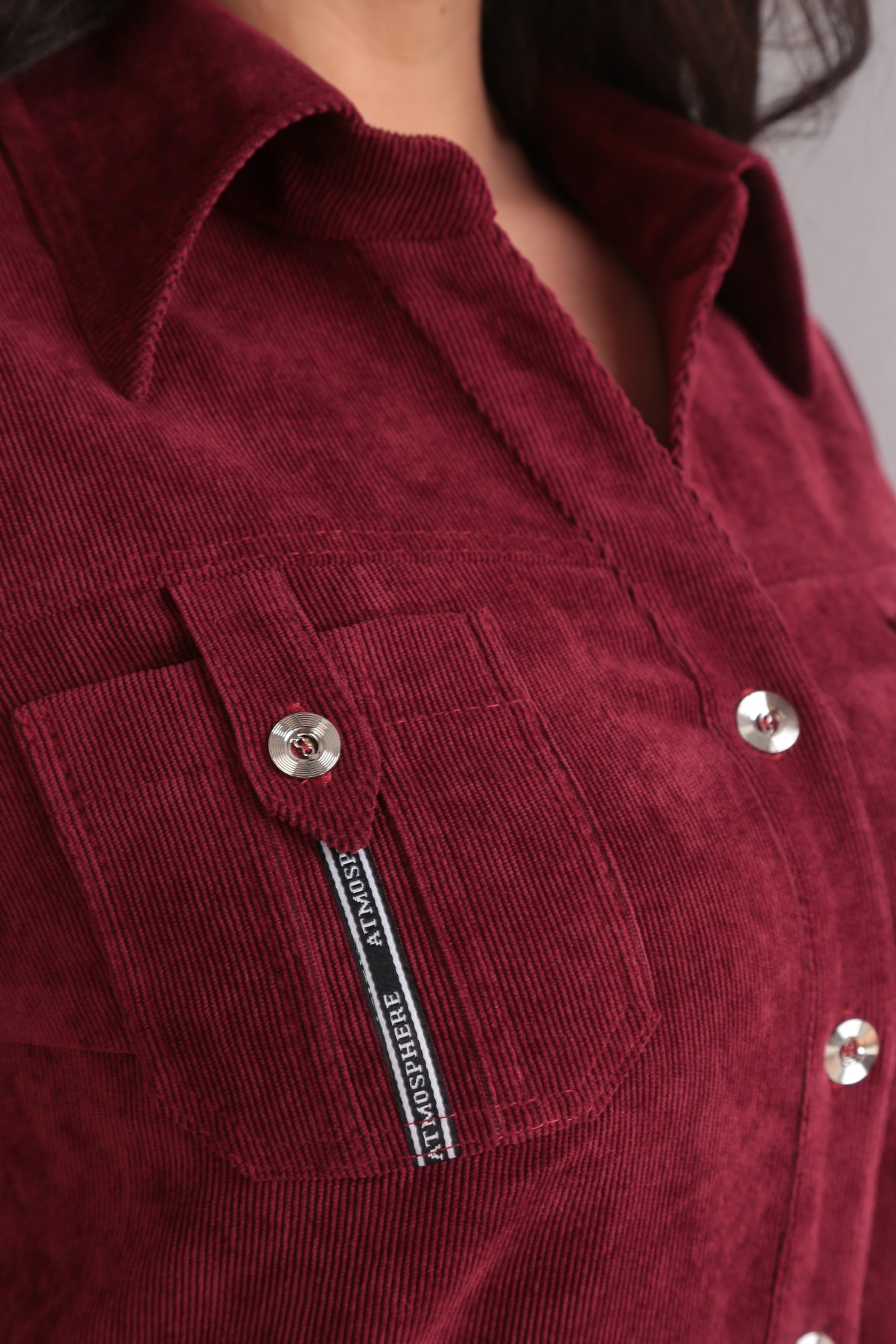 Современное вельветовое платье в стиле сафари — отличный выбор для Вашего гардероба в любое время года. Платье слегка расширено к низу. На переде обработаны два кармана c листочками, два накладных кармана в области груди с отделочной тесьмой, застёжка на 3 петли и пуговицы. Спинка слегка удлинена по отношению к переду, боковой шов с отделочной вставкой, декорированной тесьмой с полукольцом, и полукруглыми разрезами внизу. Рукав втачной, одношовный, внизу присобран патой. Воротник стояче-отложной со стойкой.