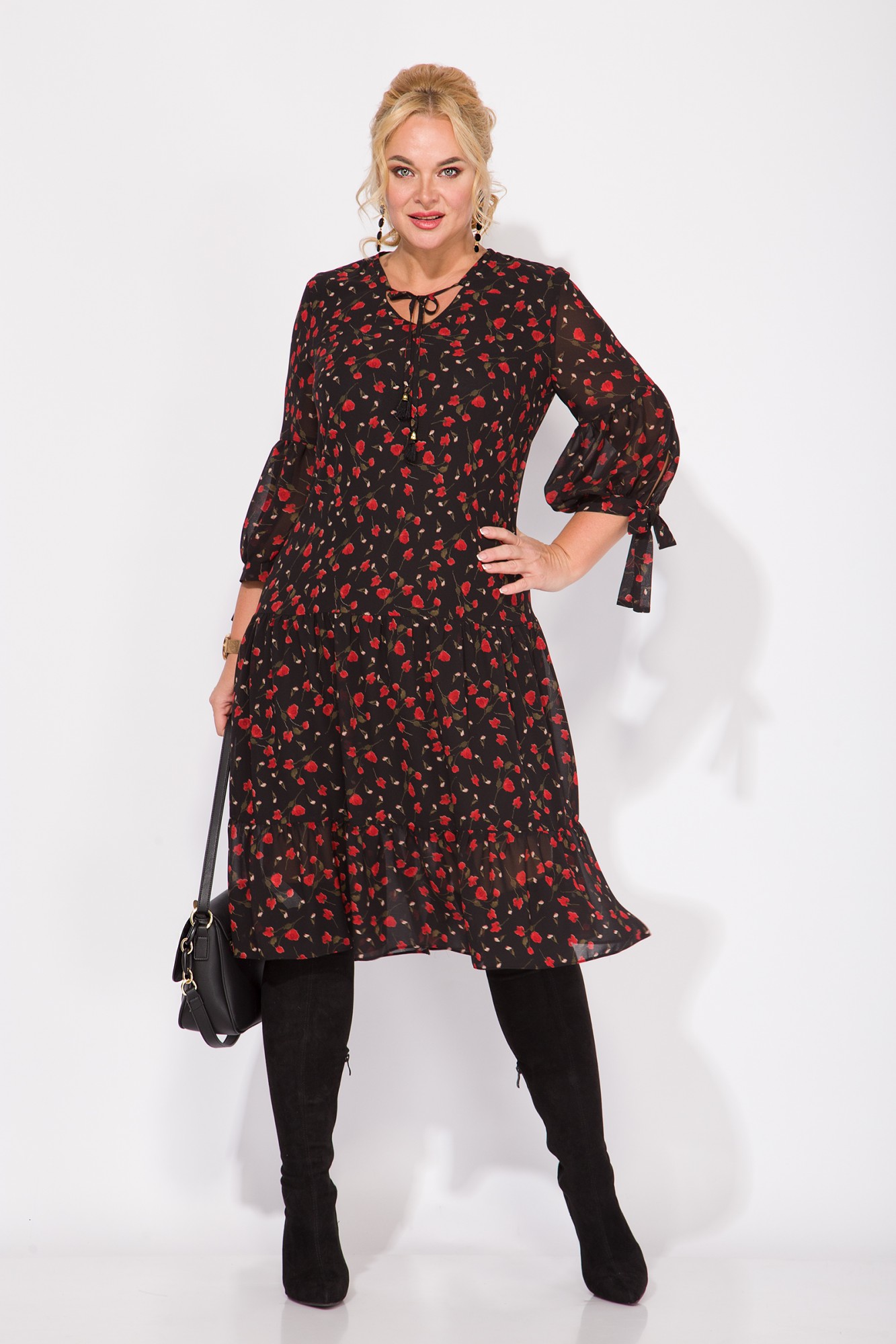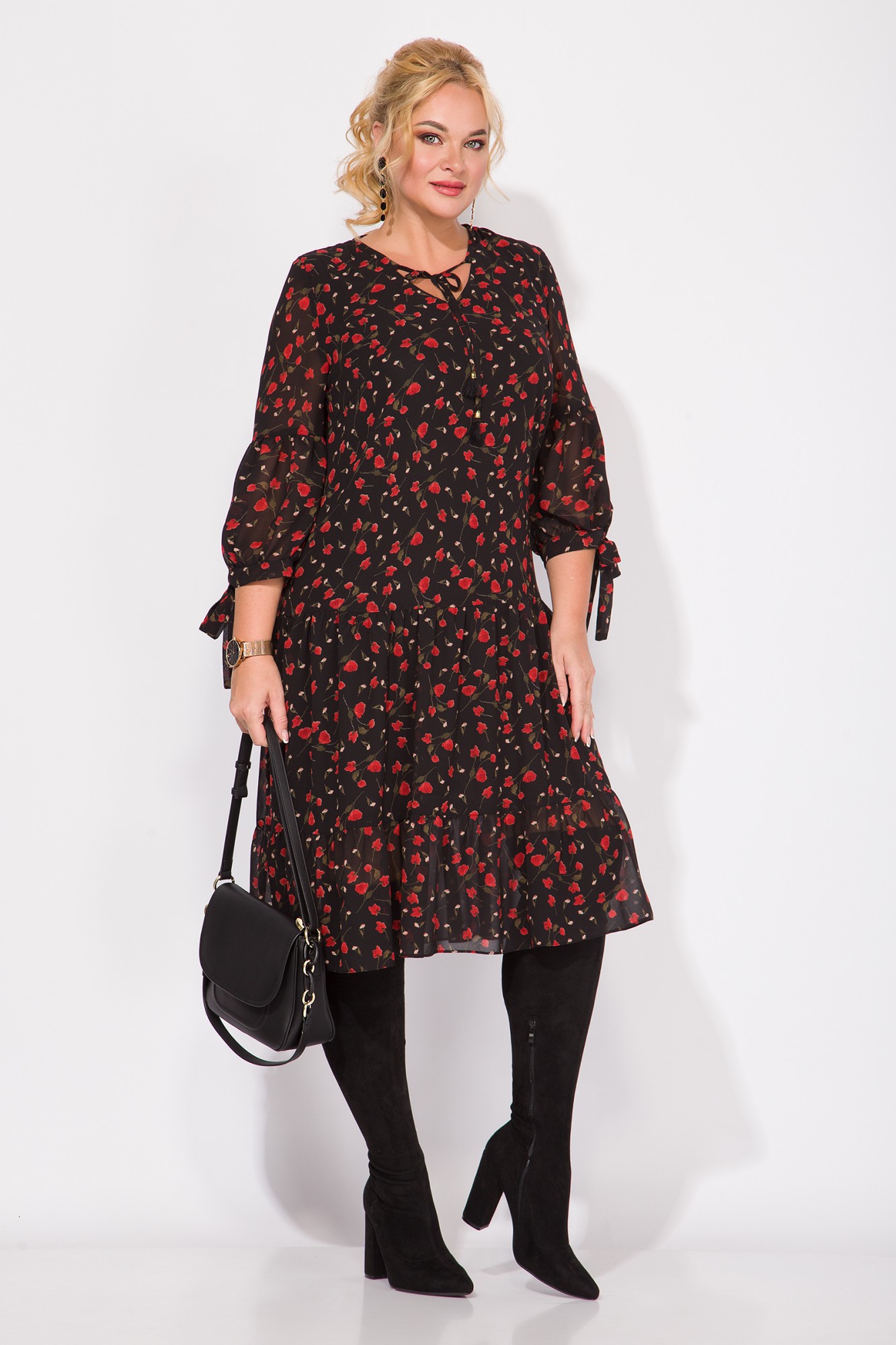 Платье LILIANA М 1100 черный+красный+(маки) с ID товара 350058